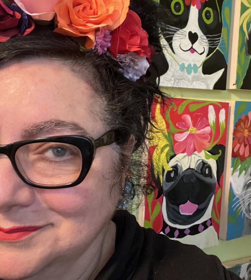 What are the featured animal paintings inspired by? These pet portraits are inspired by the unconditional love between pets and owners. I try to capture that love using whimsy and colour, bringing light and joy to each piece which I hope resonates with the