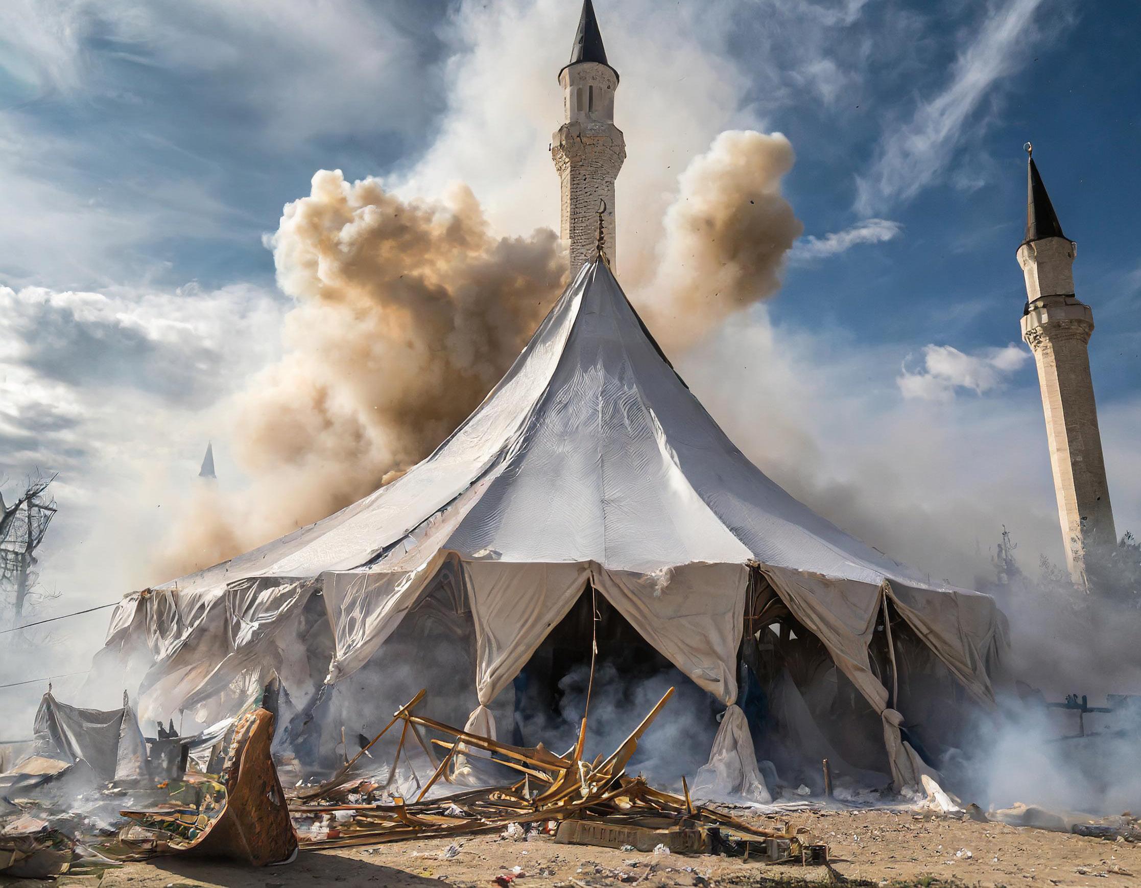de Al Deif y del traductor son extrañas, parecen dos hombres satisfechos, como si hubieran conseguido su objetivo. Ni siquiera oye el F−53 que desde sesenta quilómetros ha lanzado una bomba de racimo guiada de mil quinientos quilos, que impacta metro arriba metro abajo, sobre la tienda en la que el Escritor acaba de firmar la mejor campaña publicitaria de la historia.