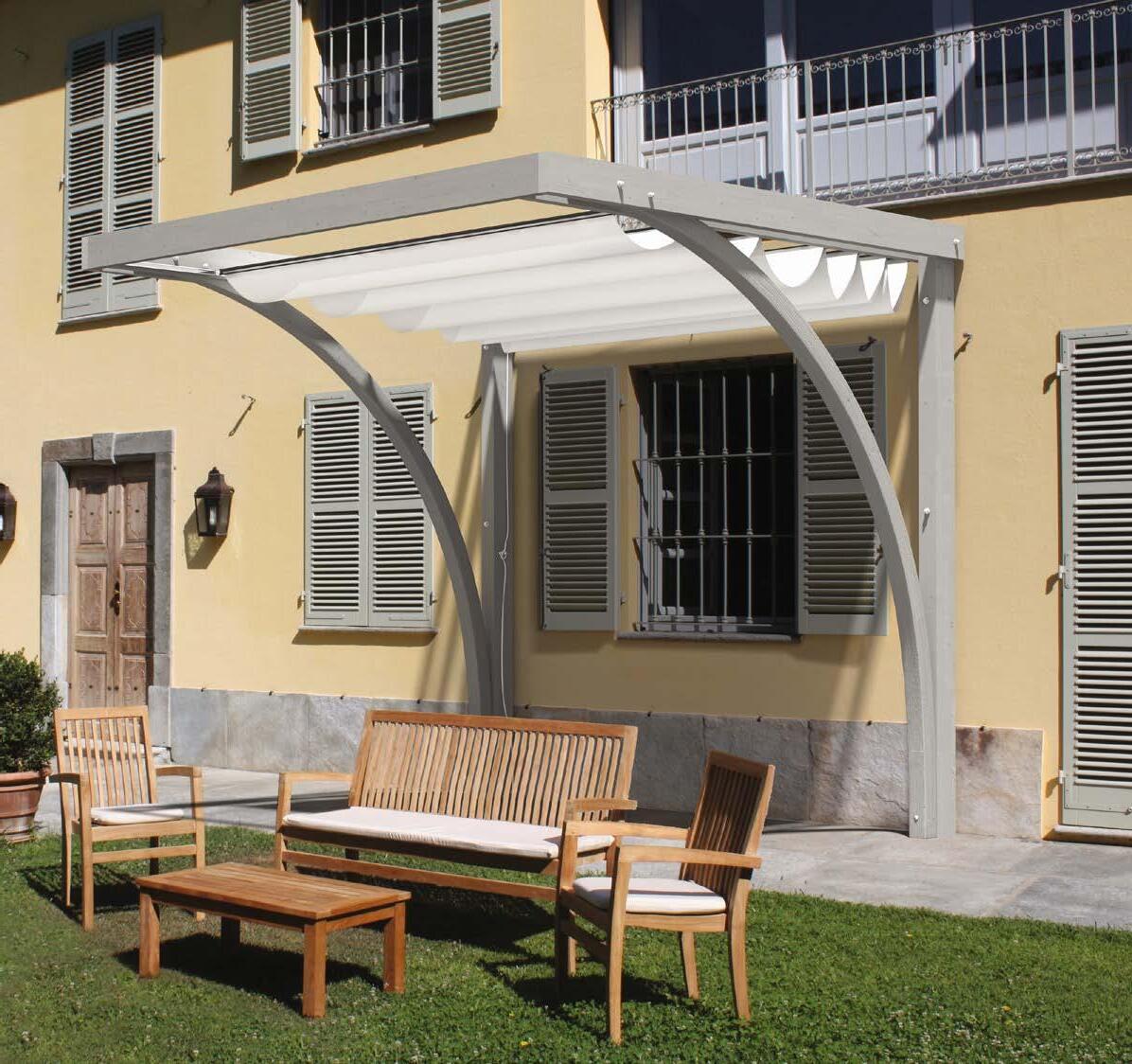 La Pergola Volo è dedicata agli spazi esterni che richiedono grande versatilità. Grazie al particolare design addossato della struttura, non vi sono supporti a terra che ingombrano lo spazio e con la tenda a movimentazione manuale è possibile creare zone soleggiate od ombreggiate a seconda delle necessità.