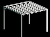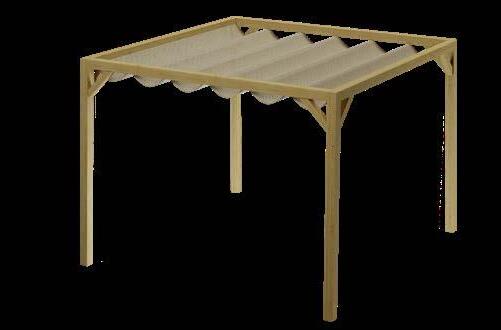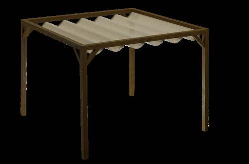 Struttura in lamellare di abete impregnato grigio. Disponibile libera in 3 dimensioni e addossata in 4 dimensioni. Le strutture possono essere abbinate alla tenda nelle 3 colorazioni proposte.