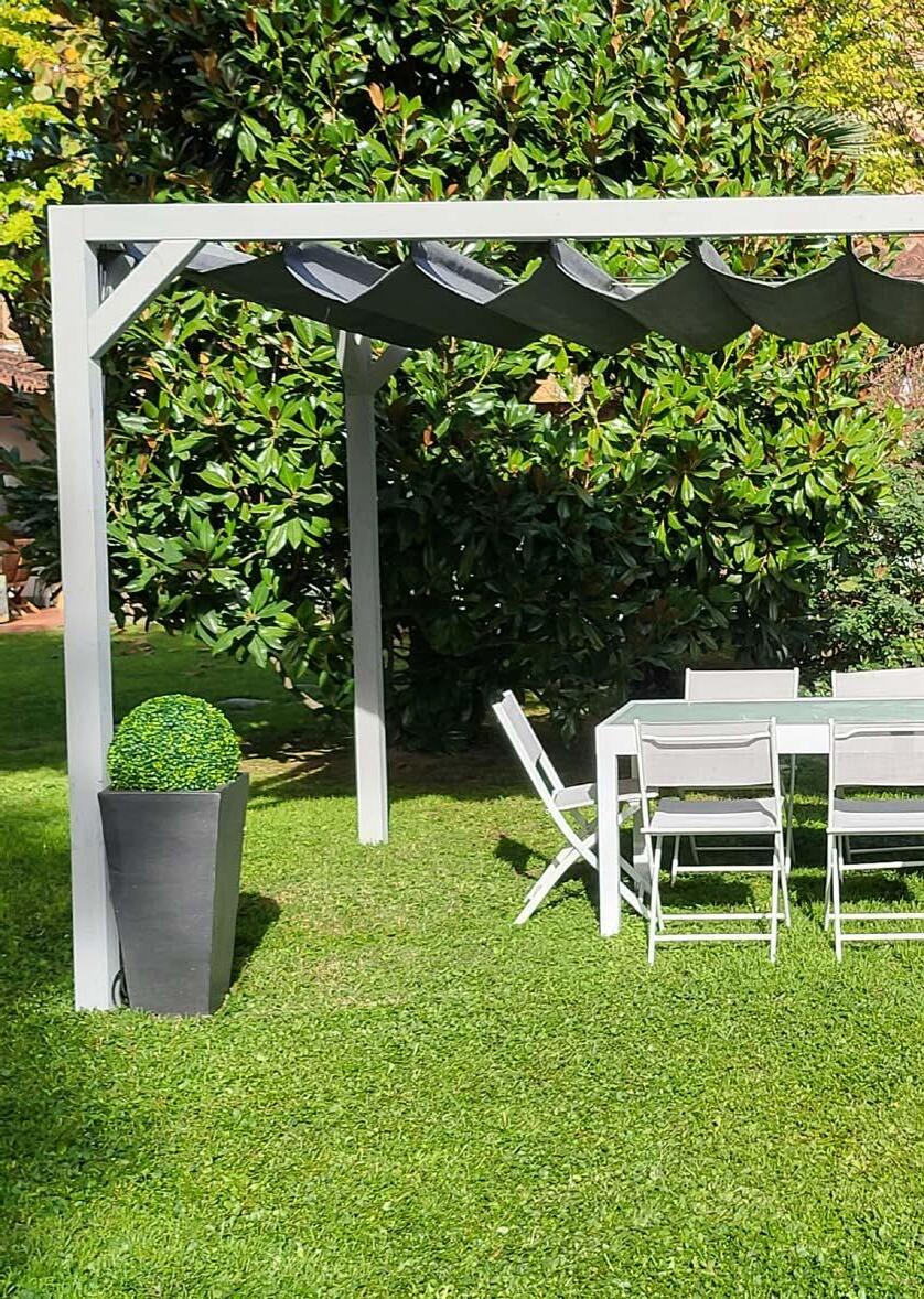 La pergola Shadow è una struttura prodotta in abete lamellare proposto in 5 colorazioni, fornito con tenda ombreggiante scorrevole disponibile in 3 finiture diverse.