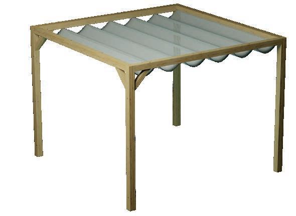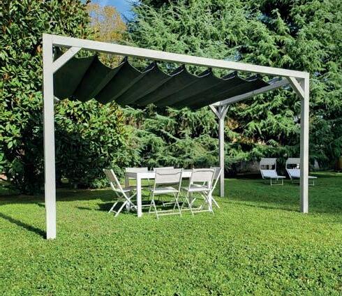La pergola Shadow è una struttura prodotta in abete lamellare con tenda ombreggiante scorrevole.