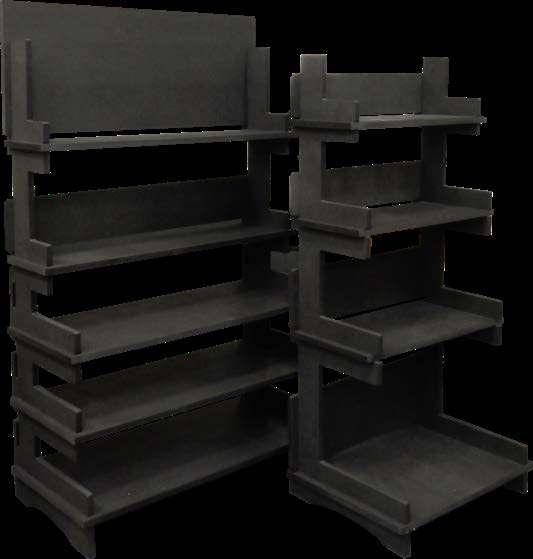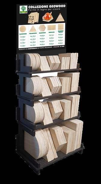 Esempi di espositori automontanti prodotti in MDF e compensato.