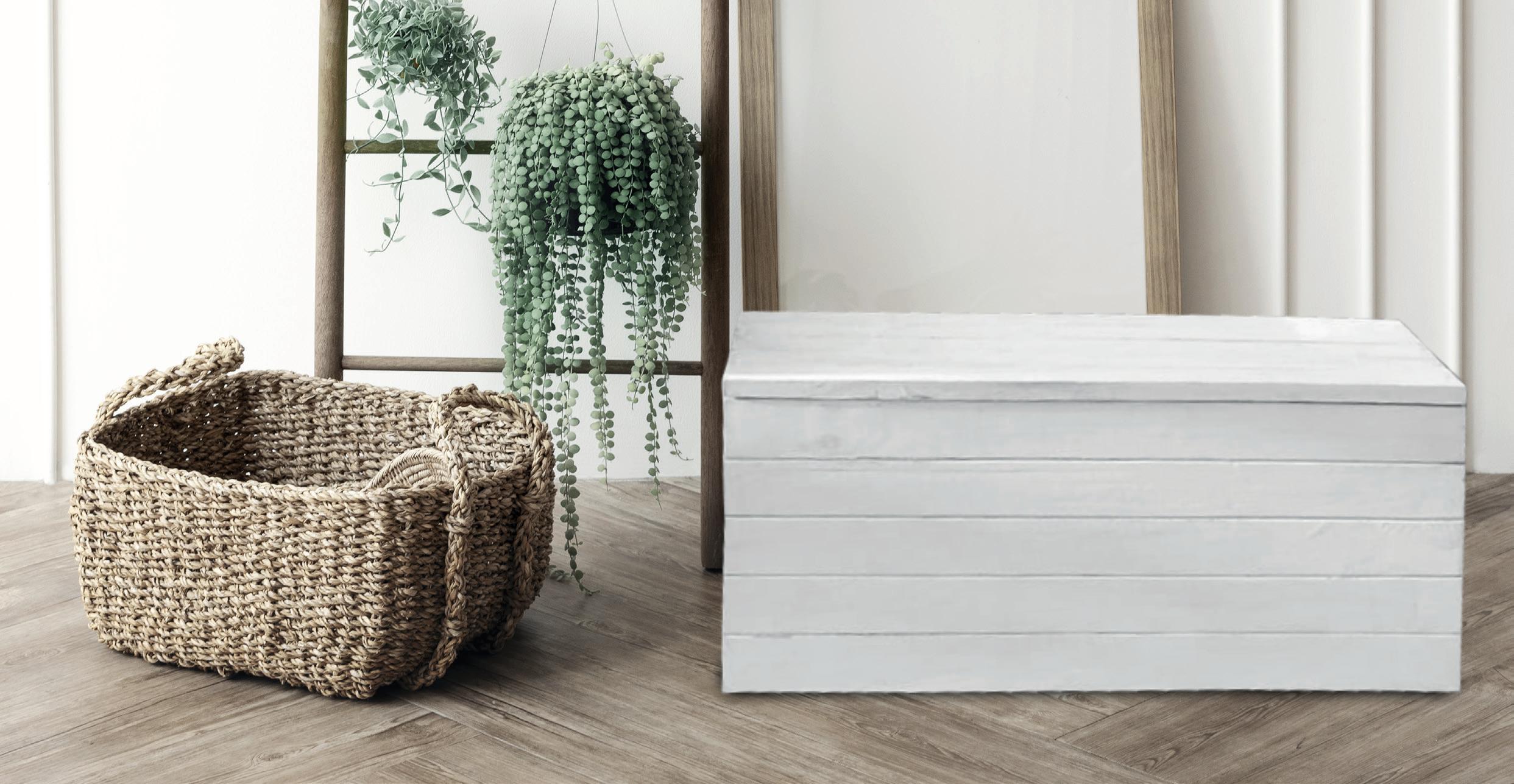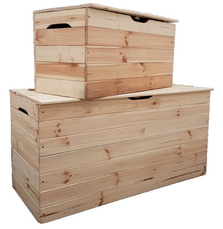Bauli in conifera e paulonia a pannelli pre-assemblati etichettati e blisterati con istruzioni, forniti di ferramenta. I bauli in paulonia sono disponibili in colorazione naturale e bianco. I bauli in conifera sono disponibili in colorazione naturale.