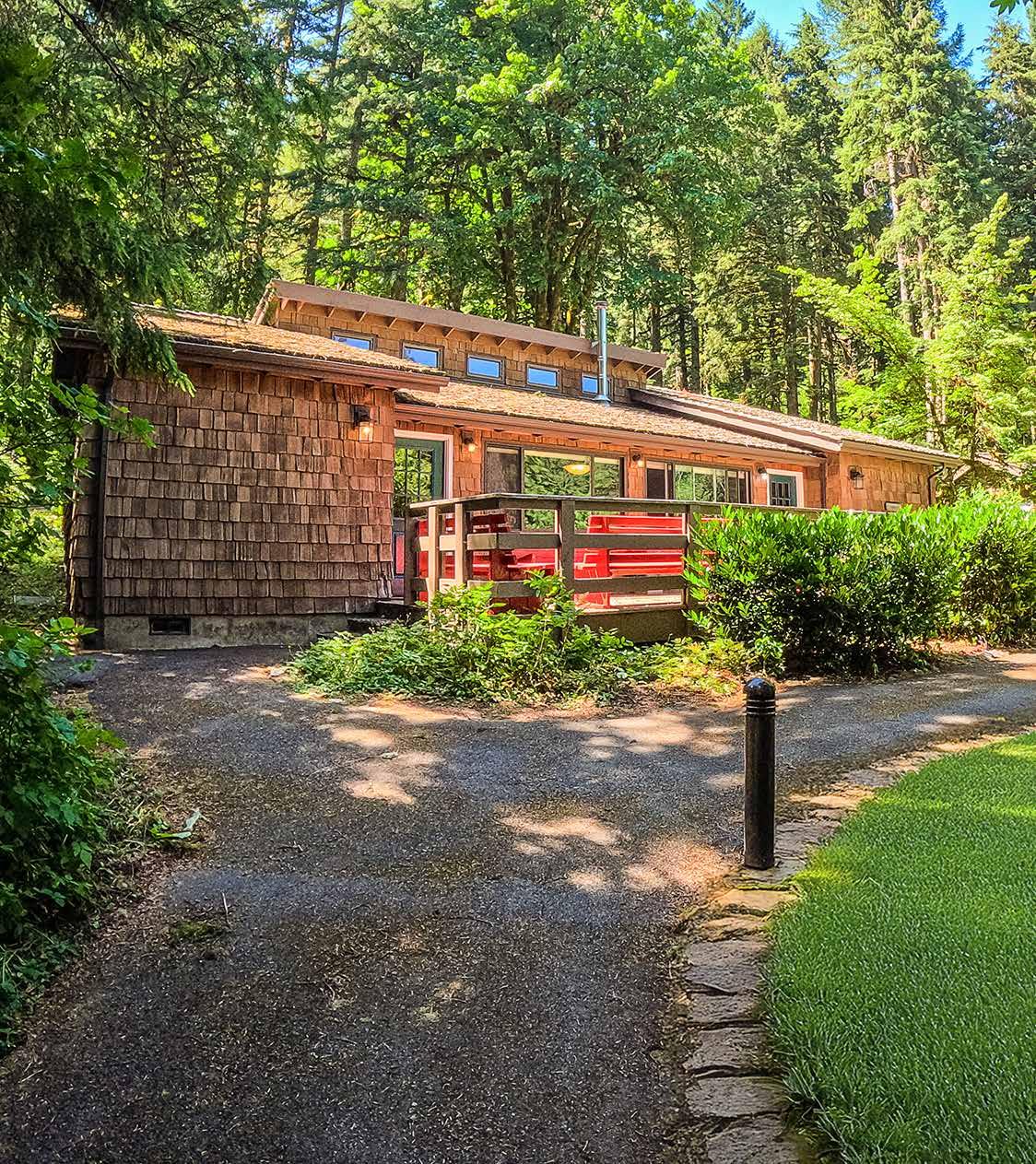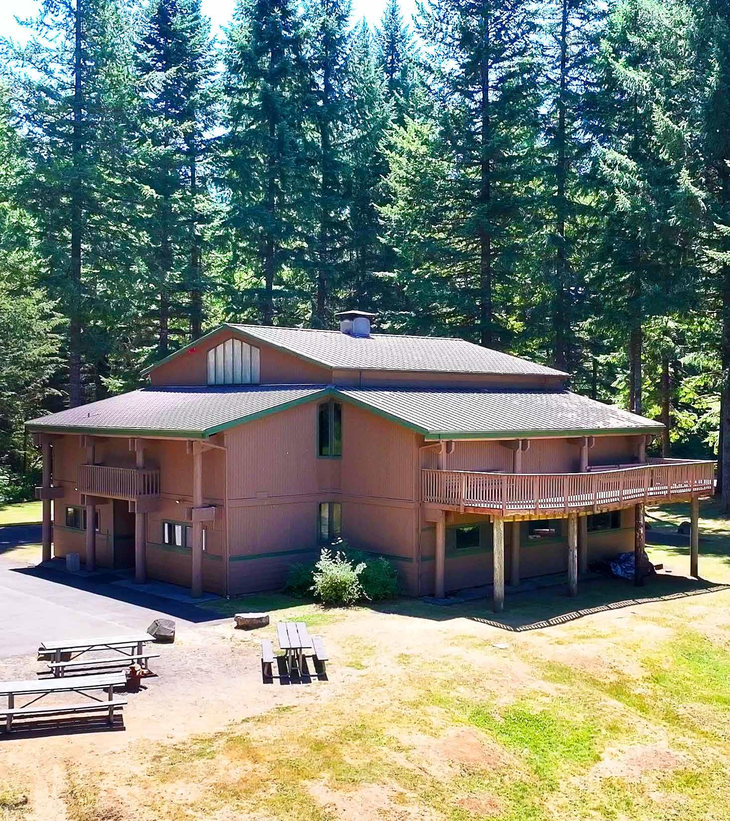 Nestled in the tall trees this 50+ year old ranch is a fantastic choice for your special event. This rustic bunkhouse event space has a commercial kitchen with stainless steel prep surfaces and refrigeration, a central stone fireplace with firewood included, 8 (8x3) picnic tables inside, additional seating set with coffee table, a round table and chairs, and several more picnic tables outside. There are multiple balconies for all your loved ones to gather in a glorious woodland setting or for a fantastic wedding portrait at sunset. Featuring two multi-stalled restrooms, an ADA bunkroom downstairs which would be a bustling space for your wedding party to get ready on your big day, Dayuse parking permits for up to 30 vehicles. Endless options for photography, an open meadow area for the outdoor ceremony of your dreams, in an awe-inspiring forest setting with forest trails surrounding the property.