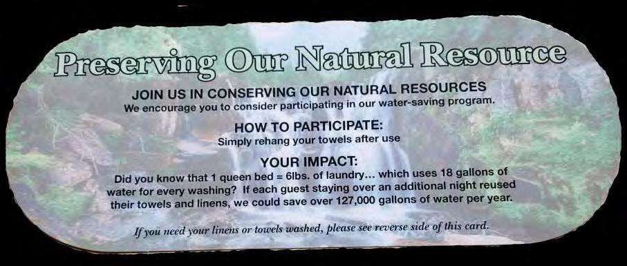 In 2018 our towel and linen reuse cards were re created with our own water saving statistics and encourage guests to participate.