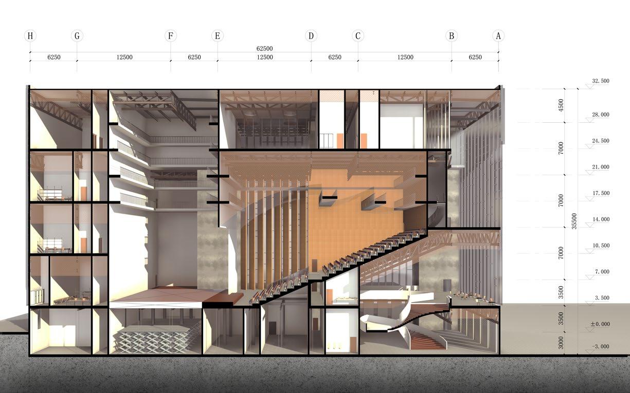 Entrance of Basement Parking -2F -3F Basketball Gym Swimming Pool Equipment Room Car Flow Parking Space Vertical Transport Skin Grilling Glass Curtain Wall Hidden Fram Gymnasium Theater Corridor - 3F 4-8F City Public Square Main Entrance of Gym Library 1.Main Stage 1.Main Stage 2.Auditorium 2.Side Stage 3.Understage 3.Openfloor 4.Openfloor 4.Openfloor 5.Natatorium 5.Play Pool 6.Shop 6.Natatorium 11.Open-shelf Reading 11.Artistic Gymnasium 16.Class 16.Sinking Courtyard 7.Rehearsal Room 7.Table Tennis 12.Office 12.Sports Dance Rehearsal Hall 17.Multi-Function Room 17.Corridor 8.Thearter Lobby 8.Basketball Hall 13.Atrium 13.Gymnastics training Hall 13.Atrium 18.Rest Room 9.Basement Parking 9.Basement Parking 14.Roof Tennis Court 14.Journalists Rest Room 14.Roof Tennis Court 10.24 Hour Book Bar 10.Gym Lounge 15.Roof Football Field 15.Press room 15.Roof Football Field 2 8 7 4 4 10 11 12 13 14 15 16 17 4 4 5 6 6 6 6 6 9 9 9 1 1 3 4 4 10 18 11 12 13 14 5 6 7 8 16 15 17 2 2 3 Section 2-2 1:1200 Section 1-1 1:1200 Function & Entrance Explosion Diagram