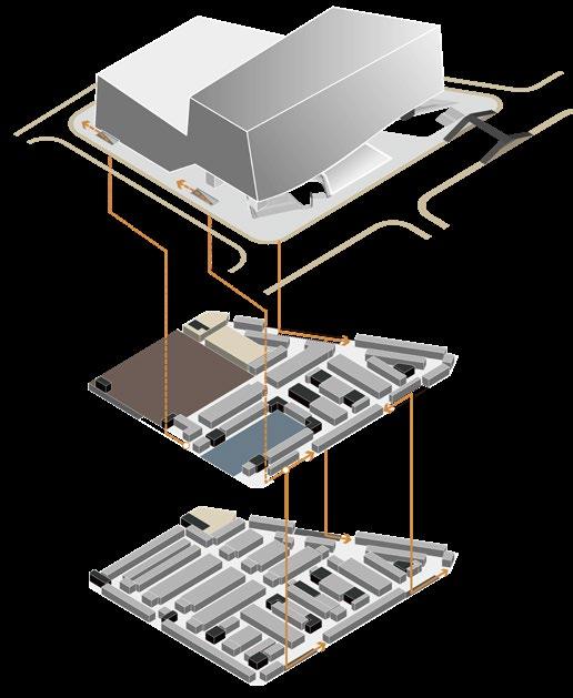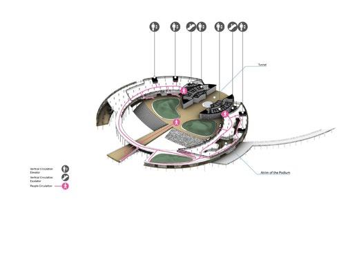 Due to the complex functions and huge use of people, we have designed an efficient and simple underground transportation system. At the same time, as the venue for urban events, the venue will gather a large number of audiences in a short time. We fully considered the intensity of use during peak hours and set up three two-way access to the underground garage exit.