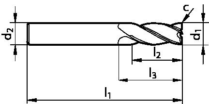 39°/40°/41° helix. Suitable for slotting, roughing and finishing aluminium and Al-alloys as well as long-chipping materials and non-ferrous metals