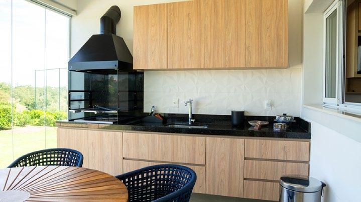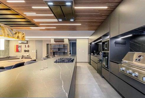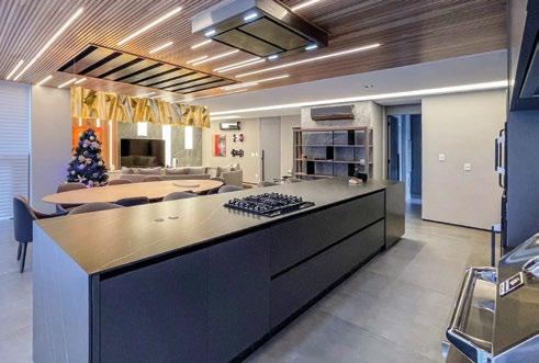 A cozinha foi concebida como uma adaptação fidedigna do que é uma cozinha gourmet, com os mais altos padrões de funcionalidade, estando unida ao living e espaço de jantar.