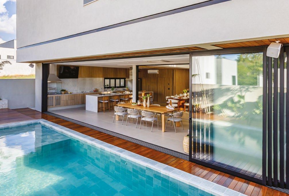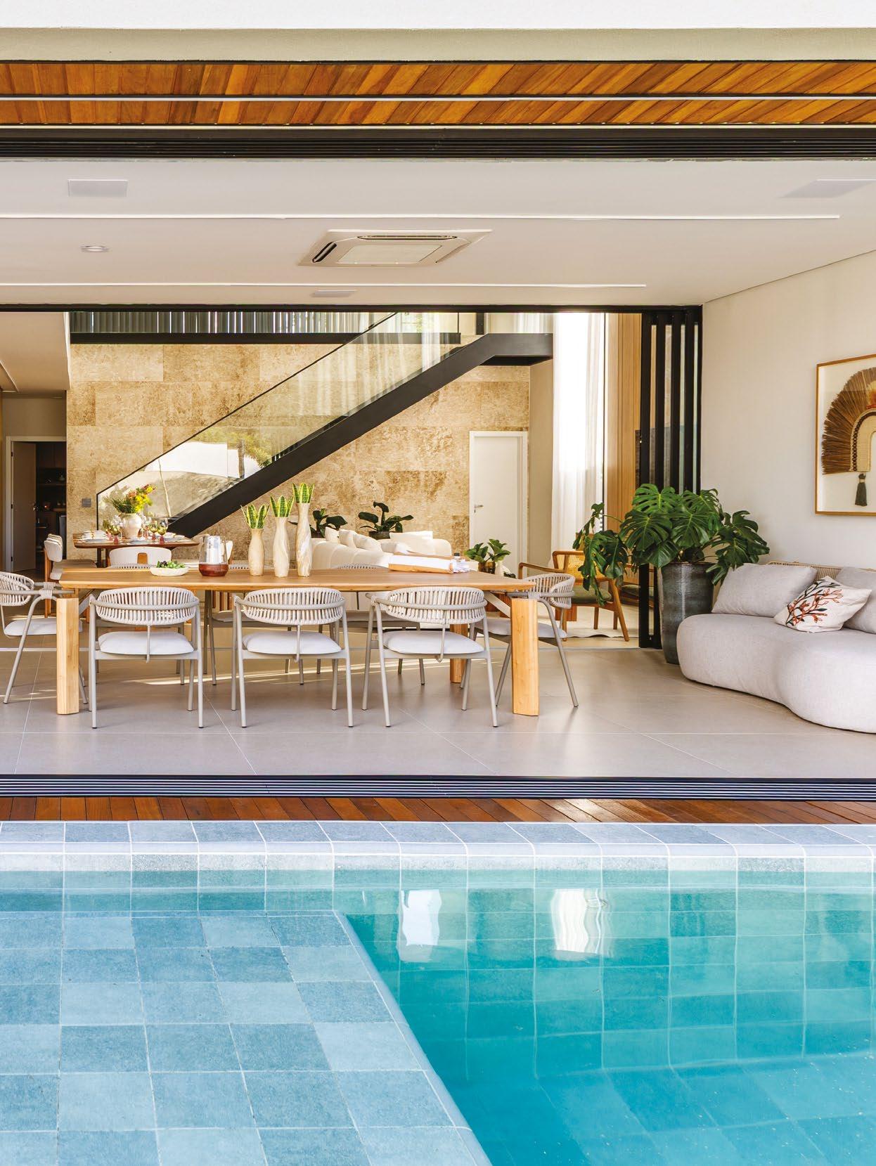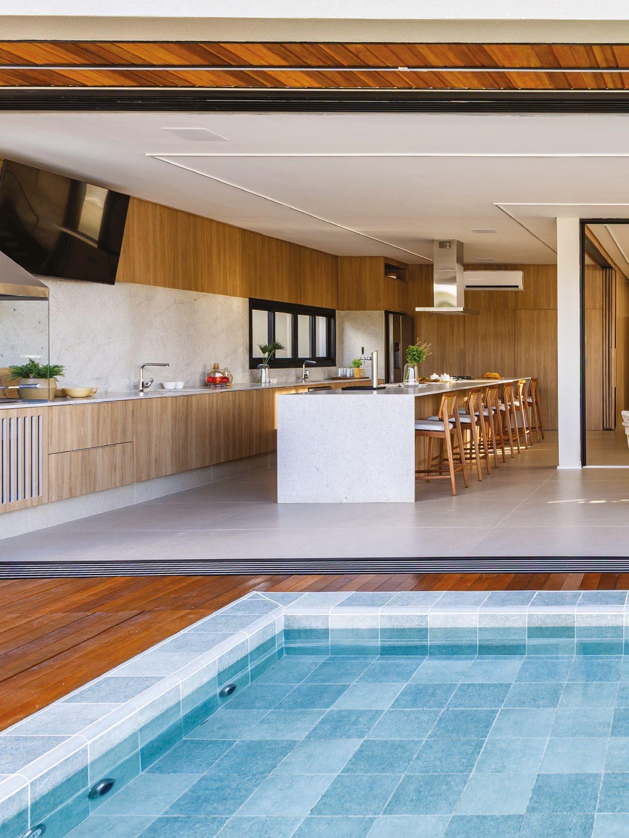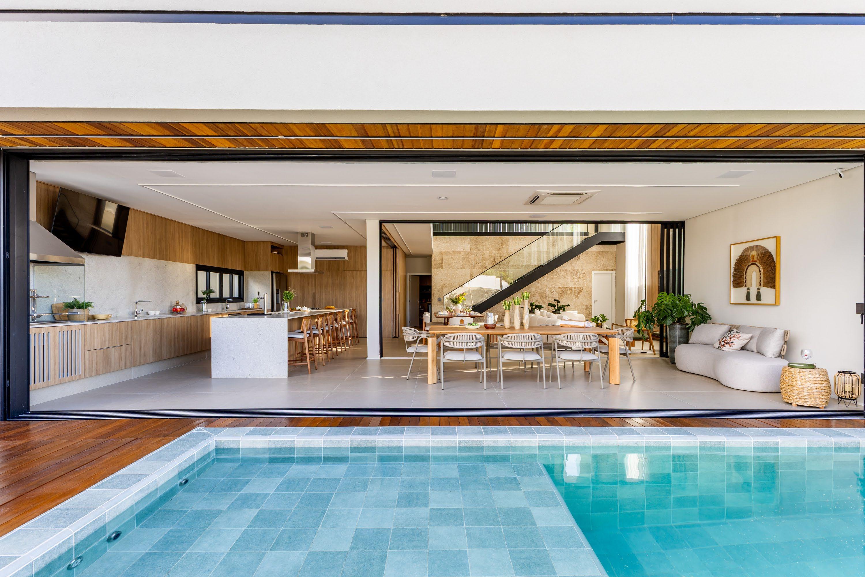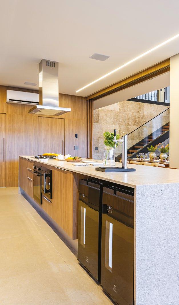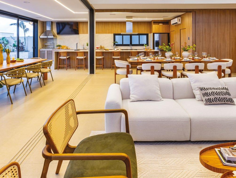 Uma das principais diretrizes do projeto foi integrar completamente os espaços sociais e de lazer. Para isso, o arquiteto redesenhou cuidadosamente o layout, com algumas aberturas e replanejamento, criando uma atmosfera fluida e convidativa.