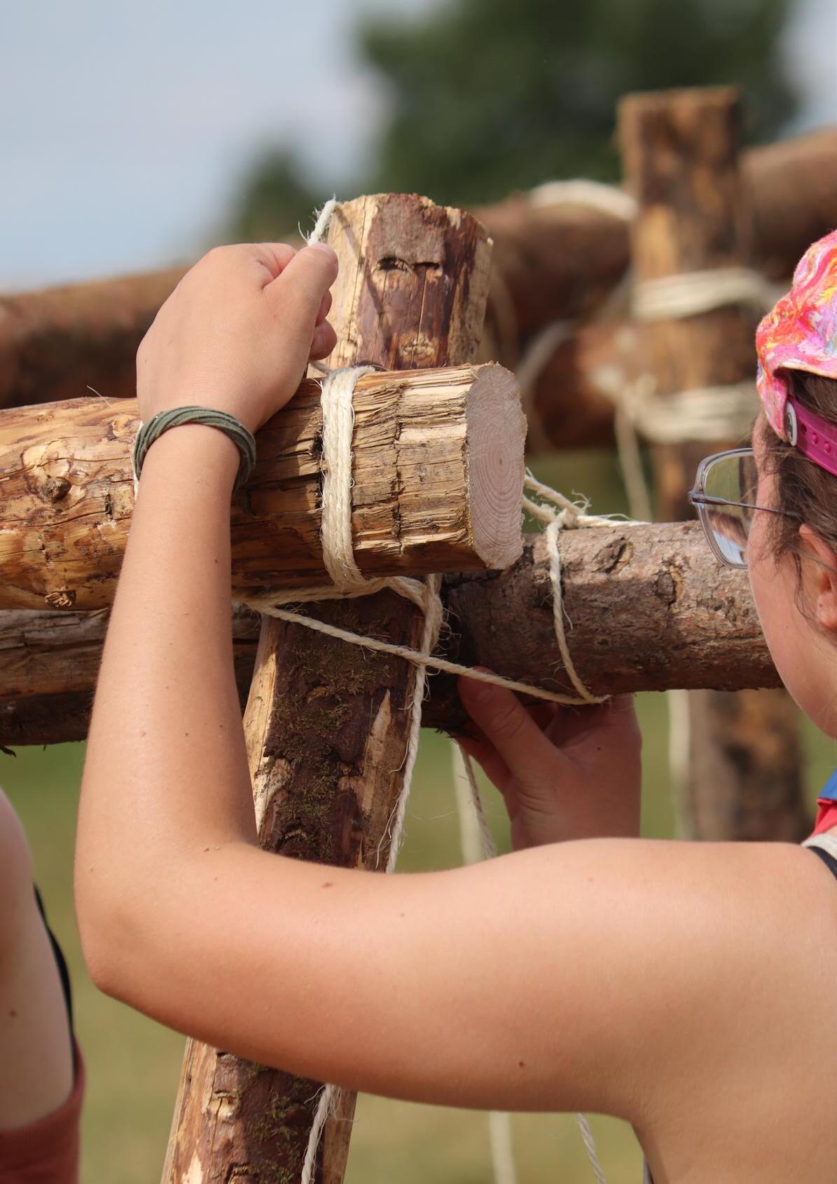 Woodcraft : construction en bois réalisée, le plus souvent, lors des camps, pour vivre un séjour en extérieur. Ex. : pilotis pour les tentes, tables à feu pour cuisiner, tables à manger, vaisselier, etc.