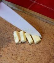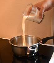 2. Fais chauffer la crème dans un poêlon et coupe le beurre en dés.