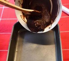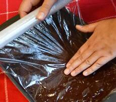 5. Verse la ganache dans un plat à gratin et filme-la au contact avant de la mettre au frigo pour au moins une heure (elle doit solidifier).