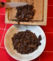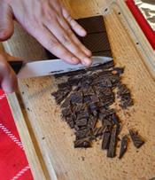 1. Hache grossièrement le chocolat et metsle dans le saladier.