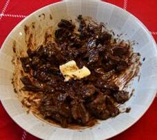 4. Ajoute petit à petit le reste de la crème en continuant à mélanger puis les morceaux de beurre jusqu’à obtention d’une ganache bien lisse.