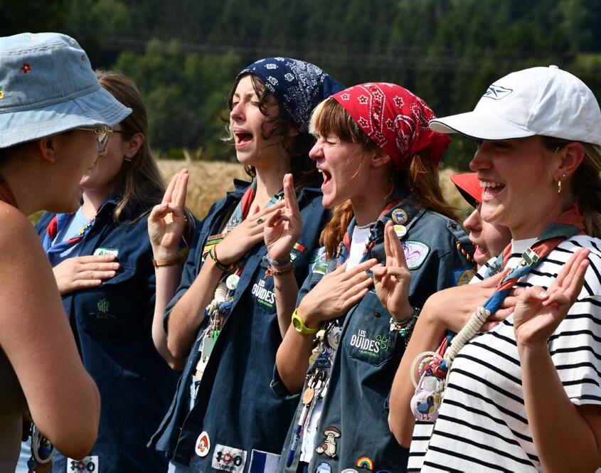 Savais-tu aussi que Les Guides est un des membres fondateurs de l’AMGE (Association Mondiale des Guides et Éclaireuses) ? C’est une association qui permet aux filles du monde entier de développer leur potentiel de citoyennes du monde à travers le Guidisme. Notre Mouvement offre un espace à celles et ceux qui désirent se dépasser, développer leur leadership et se battre pour ce en quoi ils et elles croient.