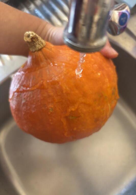 1. Avant de le cuisiner, nettoie ton potimarron à l’eau.