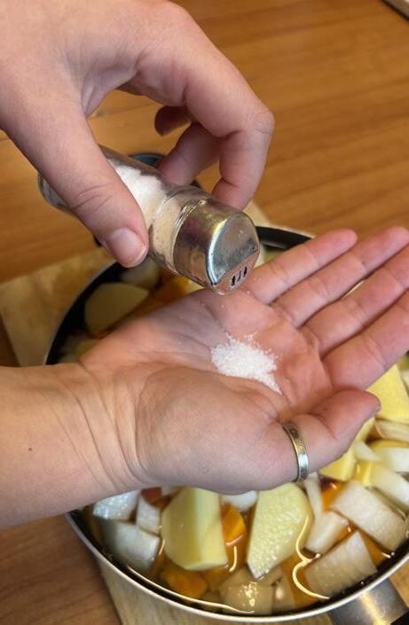 • Sel, eau et éventuellement des épices (poivre,