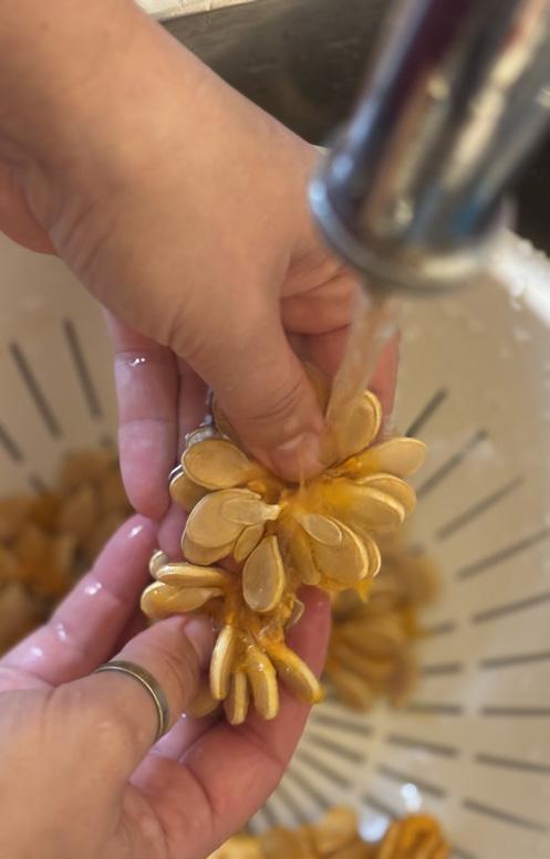 2. Lave les graines dans le tamis pour enlever tous les filaments.