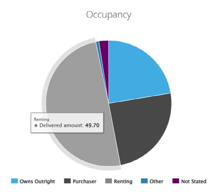 虽然迁入者可能是租户和自有者,但进入该地区的 最大比例年龄在45至64岁之间。在这一年龄段中, 超过70%的人口拥有住房,这支持了购买活动的 增强,进而导致该地区的价格上涨更为明显。