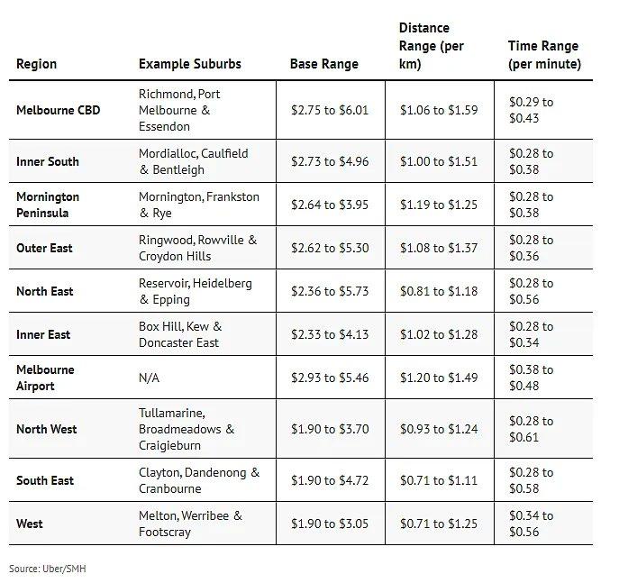 在墨尔本,从CBD以及Richmond、Port Melbourne、Essendon等内城区,或从机场预 订行程的客户,受到了最大幅度的涨价冲击。