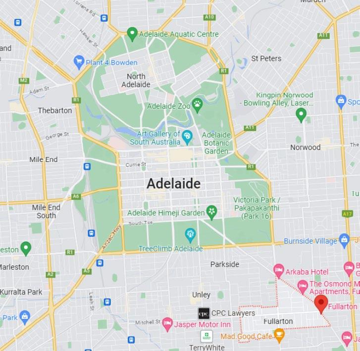 Fullarton距离Adelaide市中心约4.9公里,开车 需10分钟即可到达市中心。公交线路围绕整个 Fullarton,公共交通十分便利。