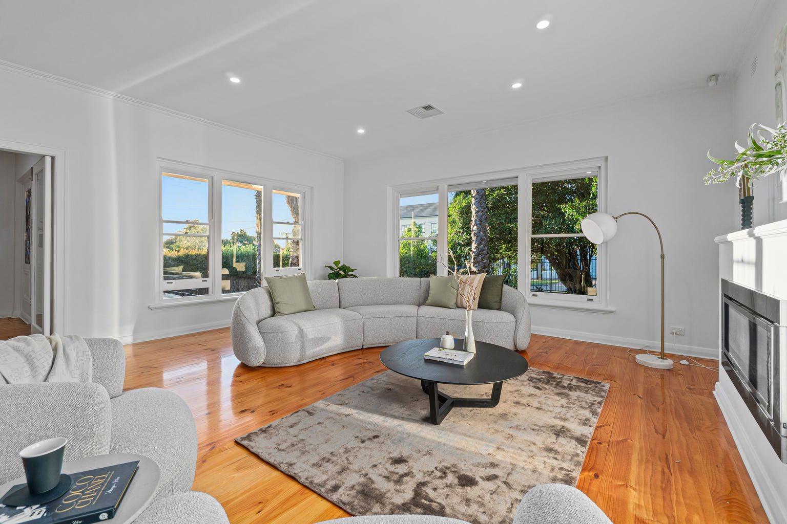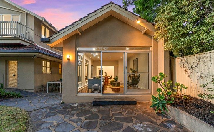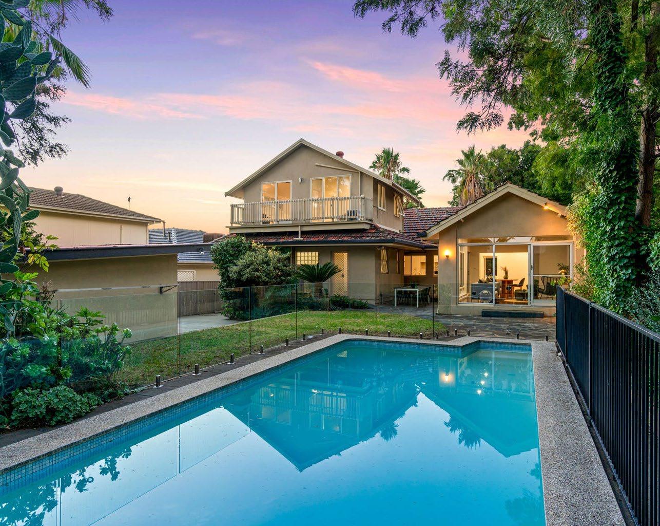 在阿德莱德备受追捧的 St Georges 核心 区,Craighill Road 的尽头隐匿着一处融合了世 纪中叶魅力与现代生活美学的隐逸之境。在南澳灿 烂的晚霞之下,挺拔的棕榈树正随风摇曳,石质阶 梯引领人们步入这座占地 875m² 的艺术堡垒。经 典的 1960 年代建筑框架在精心翻新下焕发出轻 盈而通透的生命力,大面积的玻璃立面将室外盎然 的绿意引入室内。这不仅是一座承载 4 卧 2 卫的 家族大宅,更是一处在繁华都市中难得一见的、呼 吸着自然与光影的栖息所。