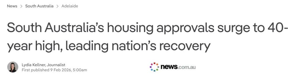 南澳大利亚的住房审批率飙升至40年来最高,