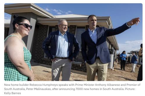 一项全国首创、耗资8亿澳元的计划将新建近 17,000套住房,以缓解南澳住房供应危机,计 划由总理安东尼·阿尔巴尼斯于一月公布。这份 8.015亿澳元的资金方案,他将与州长彼得·马 利瑙斯卡斯详细说明,其中包括针对6877套专 为首次购房者建造的住房,其中许多位于阿德莱 德北部。