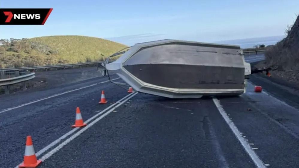 一名司机因未正确固定拖车上的渔船,导致船只在 Sellicks Hill的Main South Road上滑落,引发 交通堵塞。