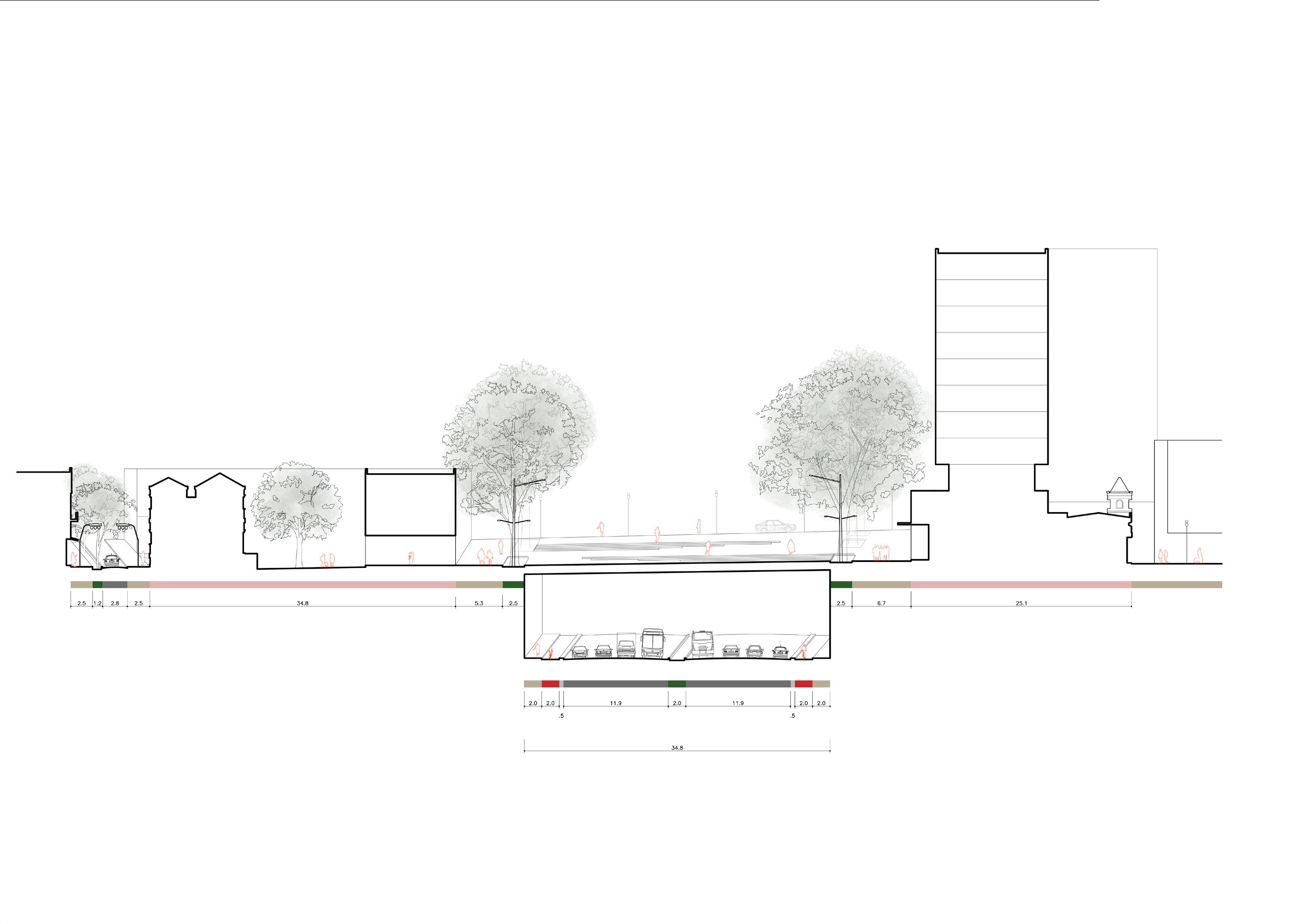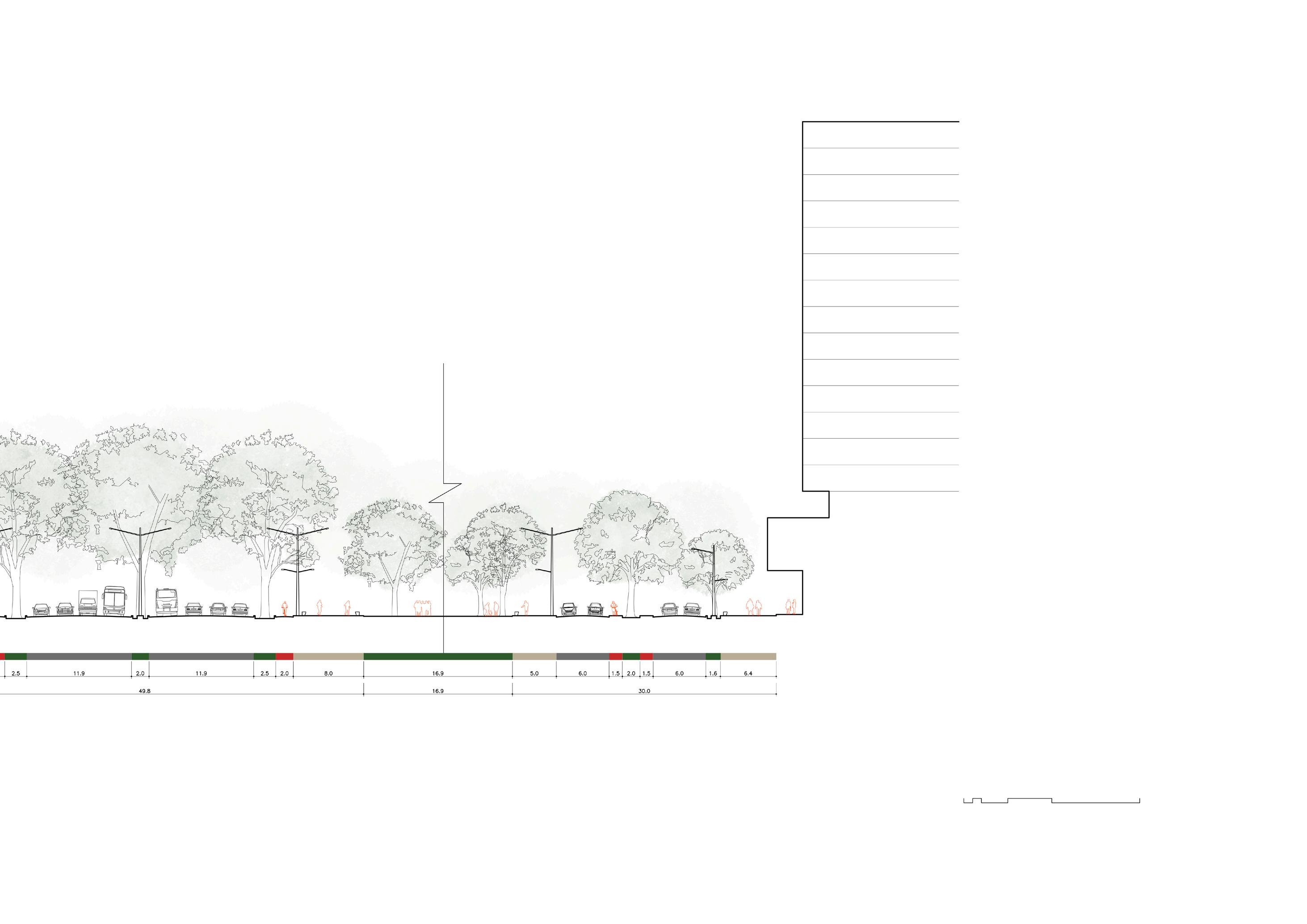 For this, the intervention project considers a radical alteration of the road, moving away from an express system that favors the car to an avenue that recovers its level crossings, sidewalks and open spaces, favoring active mobility and public transportation.
