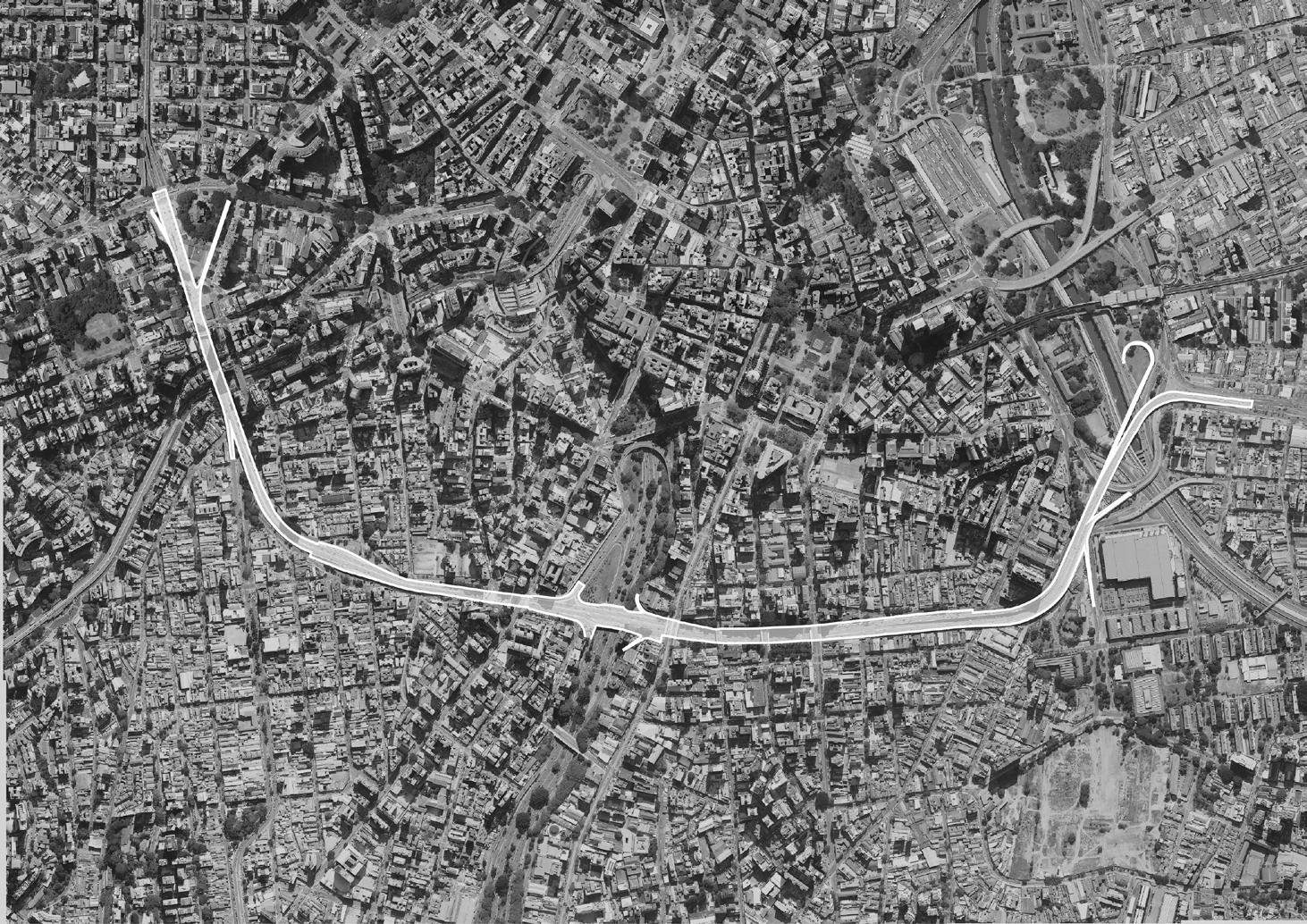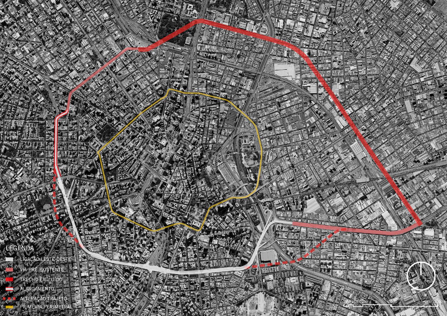 This project has its starting point with the very problems that arise on Downtown São Paulo’s territory due to the very existence of the road here called Ligação Leste-Oeste.