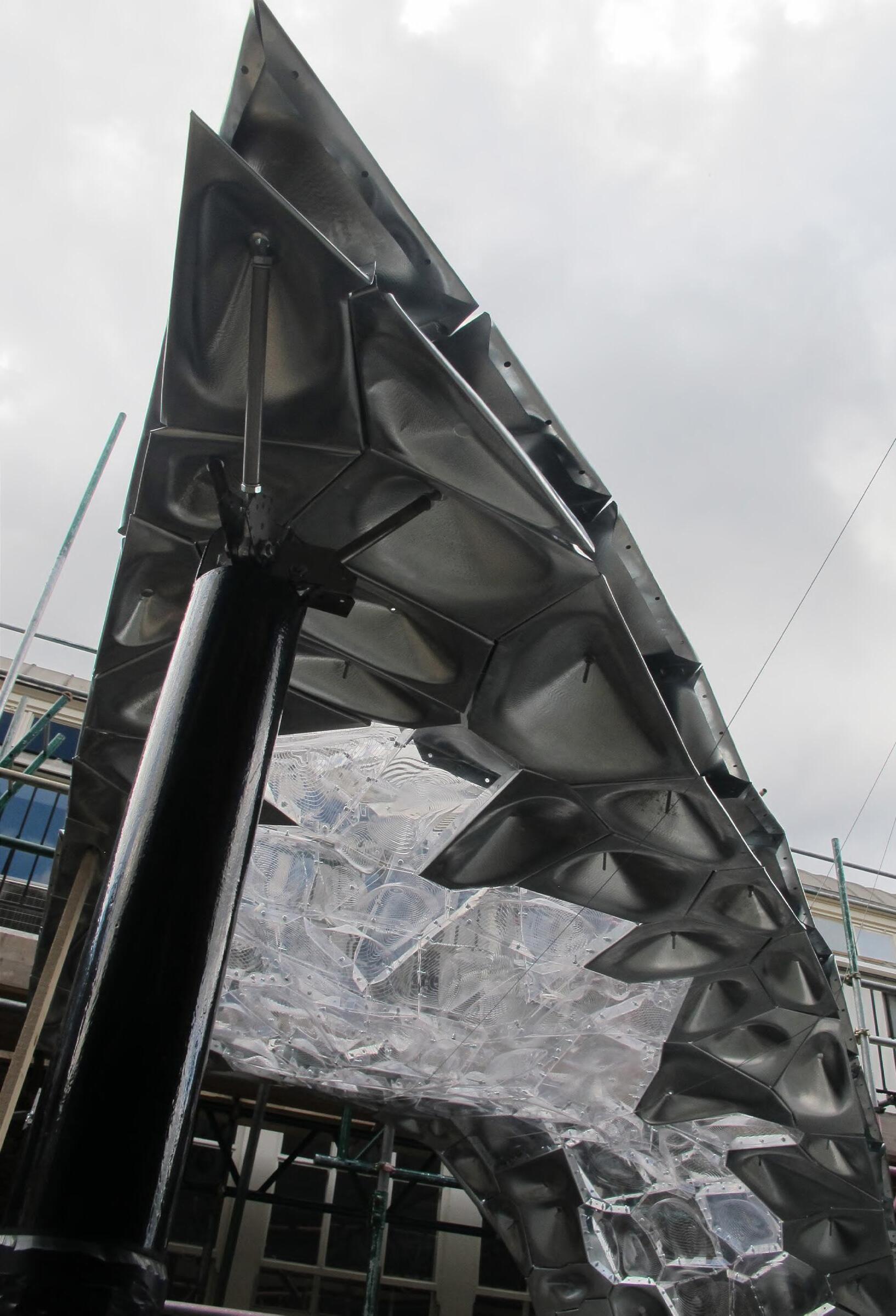 Summer DLAB 2017 explores the themes of generative design, material computation, and large-scale fabrication and assembly technologies. Our task has been the design and production of a 1:1 scale structure in the outdoor area of the AA in London. This task was investigated by focusing on a combination of structural, morphological, and contextual factors which our design intervention was expected to respond in order to differentiate its material and geometrical organisation.