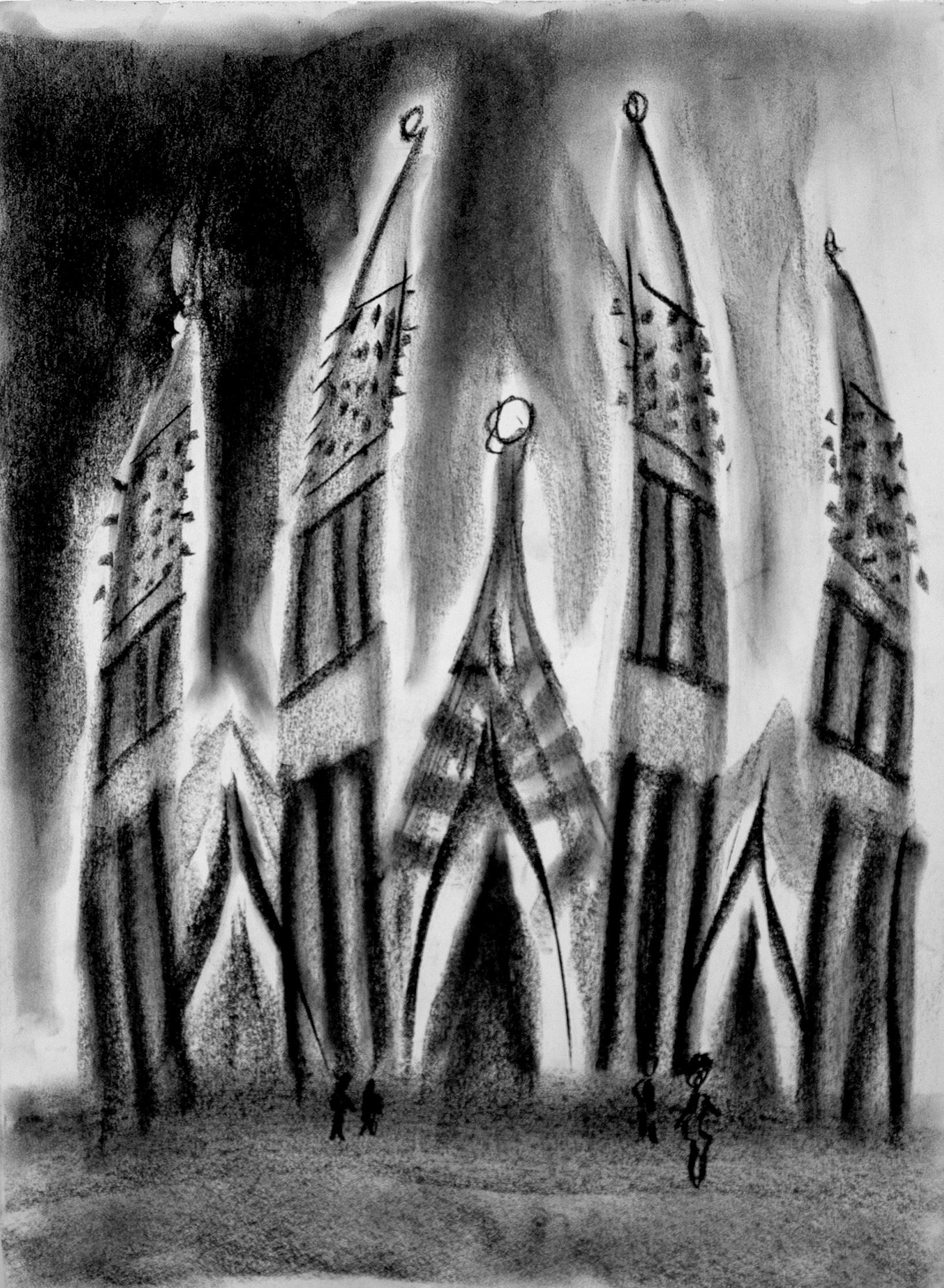 ‘La Sagrada Familia’ Charcoal on Watercolour Paper