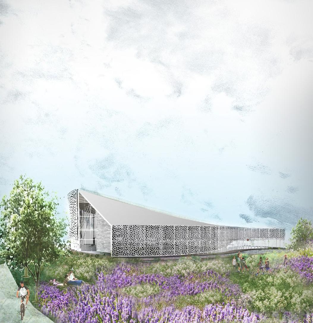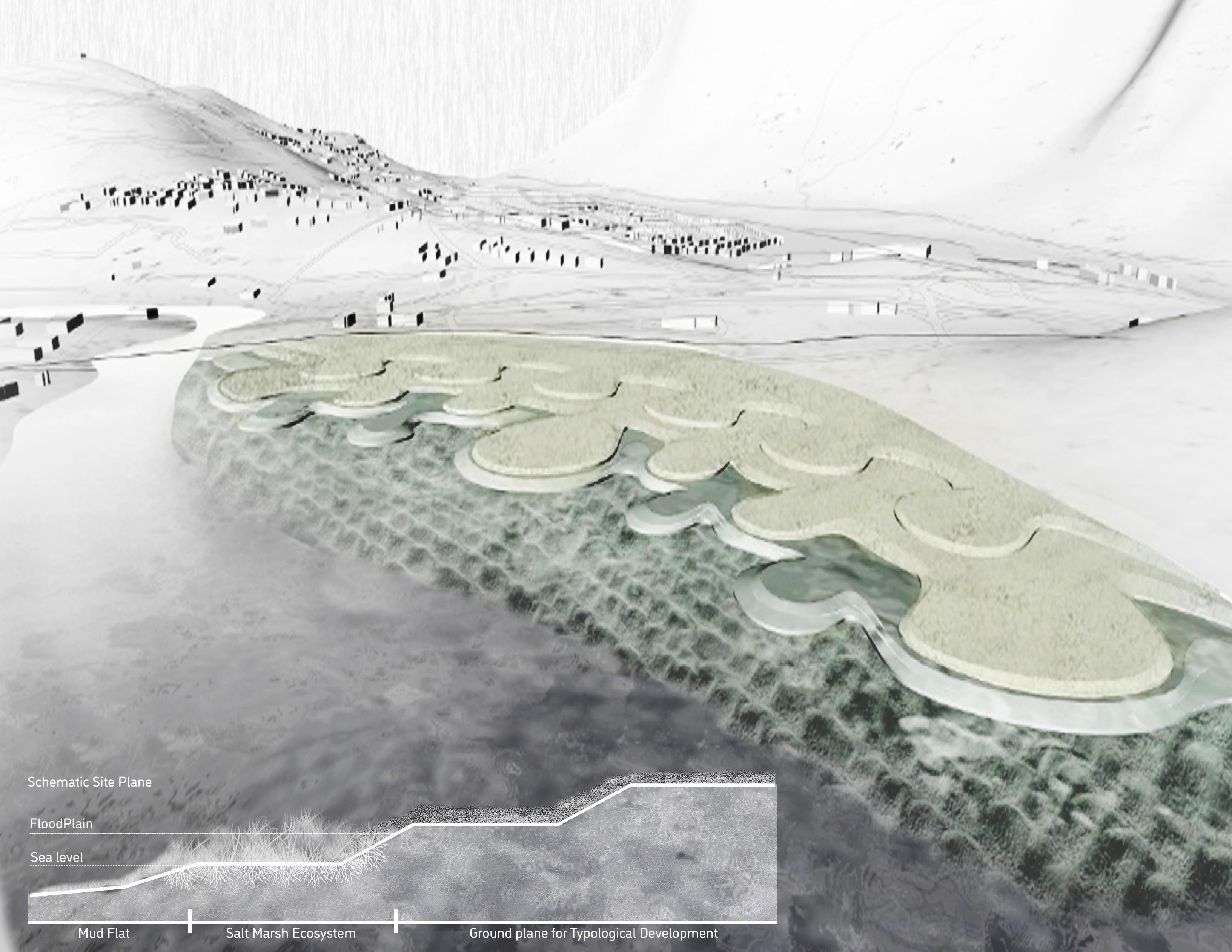 The lowest portion serves as a seasonally accessible parkland where intertidal ecosystem would yield to the growth of saltmarsh habitats, pottentially accounting for up to 15 tonnes of carbon sequestering per year.