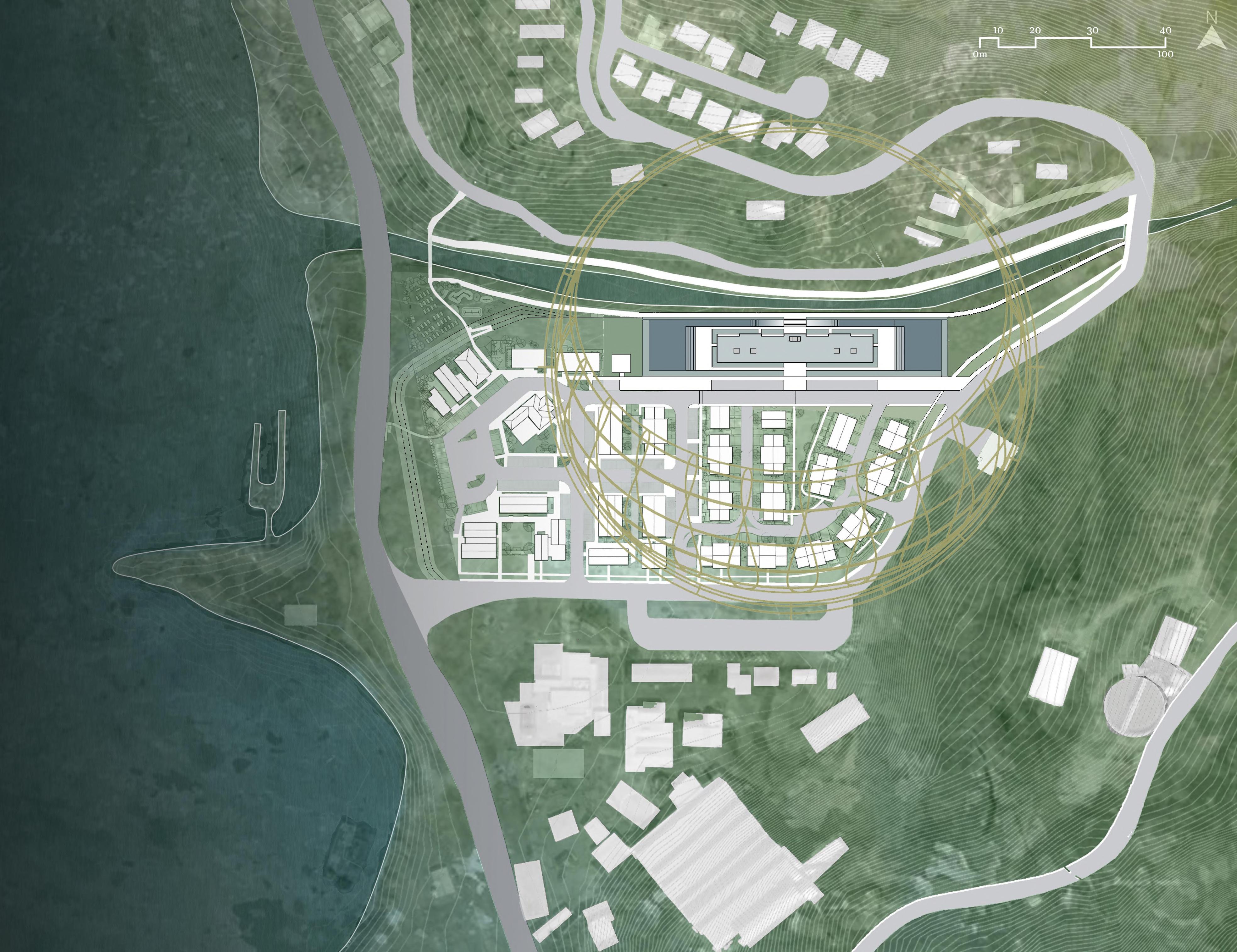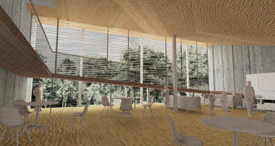 PHASE V Following the material assembly logic of the phase IV typologies and the programming of phase II, the last phase consists of constructing algae-harvesting facilities made of carbon-negative materials.