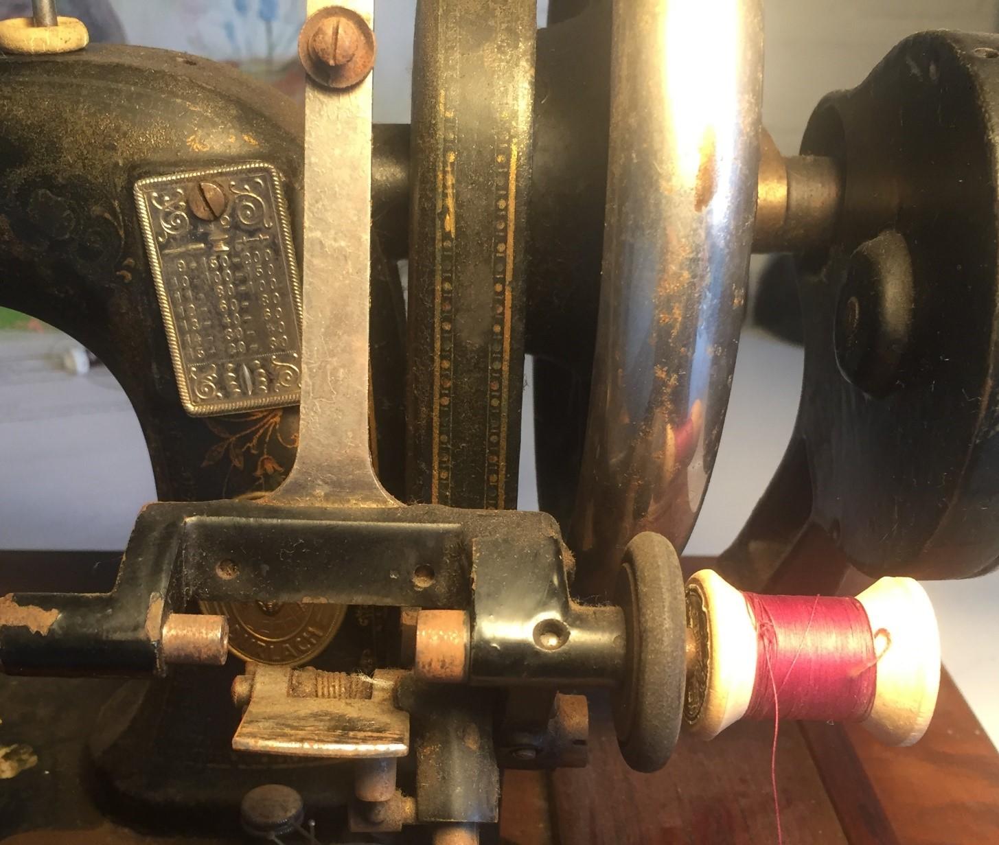 Nu, vi taler om ”nåle”, kan jeg huske en hændelse oppe i Højbjerg for rigtig mange år siden. Jeg var kaldt ud for at reparere en håndsymaskine. Da jeg ringede på døren, kunne jeg høre et barn der skreg højlydt indenfor. – Da ingen lukkede op, gik jeg selv ind og ind i stuen. Her sad der, ved et bord, en lille pige på 4-5 år ved en gammel håndsymaskine.