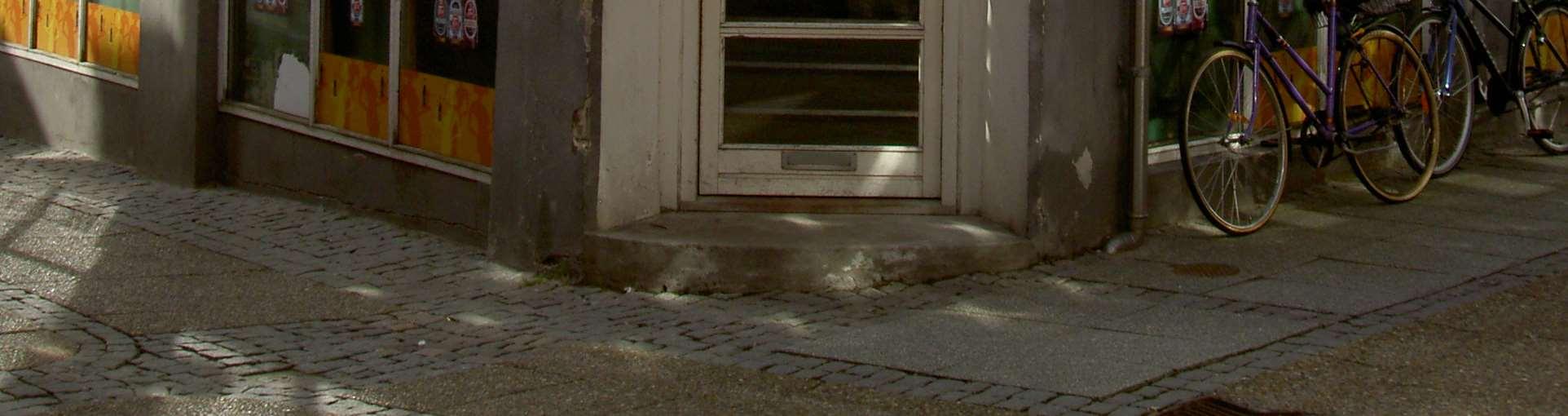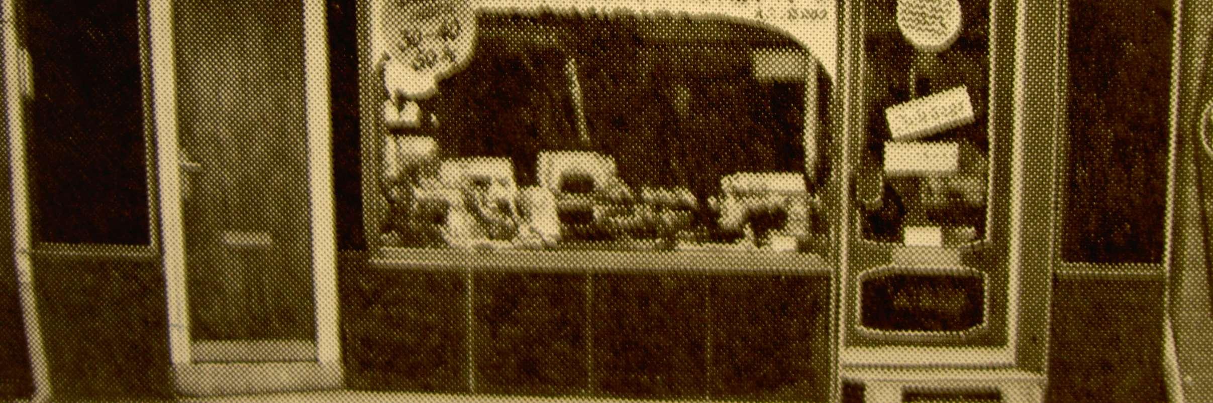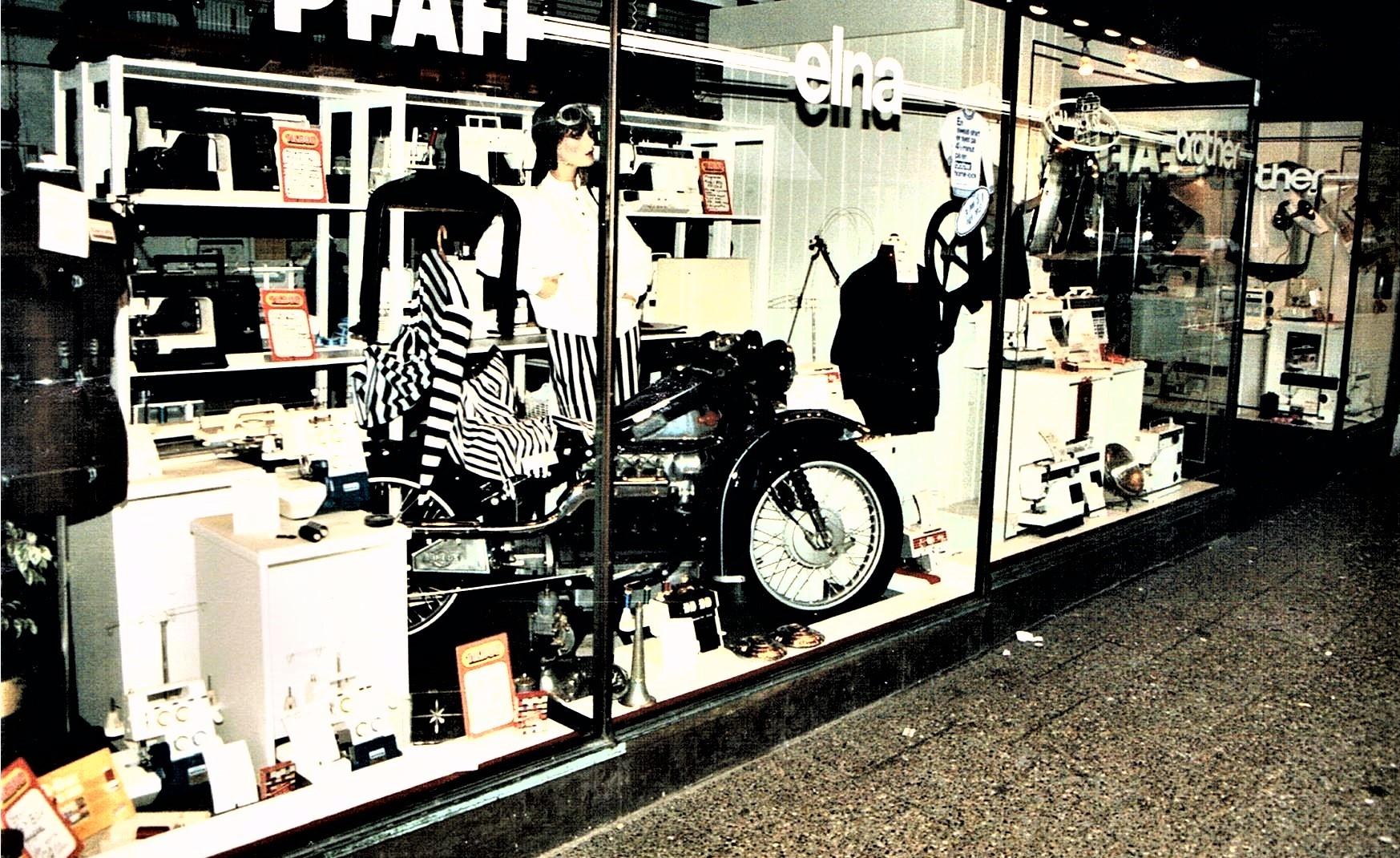 Her varhanså tilkrigen begyndte ogman ikkekunne få nye maskiner mere. Jeg kan tydeligt huske forretningen. Der var en helt speciel lugt i butikken af nye symaskiner, der havde været pakket ind i trækasser med træuld og i lyserødt oliepapir. Jeg kan næsten lugte det endnu. I 1939 var juleudstillingen bl.a. et tog lavet af kraftigt karton med et lokomotiv og to brune godsvogne, hvorpå der stod Pfaff. Det var hele tyve centimeter højt og med hjul der kunne dreje rundt. Det var kommet fra Pfaff fabrikken i Tyskland. - Man ville vise, at der trods krigstrusler stadig kørte tog ud med symaskiner. - Jeg ville gerne have det, når det efter jul skulle tages ud af vinduet igen. Men Buchreitz, der ejede firmaet, havde selv en søn, der var et par år ældre end mig, og han havde fået lovning på toget, men min far fik heldigvis lov tilatgivemigdenenevogn. I denne hjørneejendom i Houmeden 17, lå Pfaff symaskineforretningen i 1938. Her startede min far med at være agent. Indehaveren dengang hed Buchreitz. I vinduet på højre side, stod det fine lokomotiv med to Pfaff vogne udstillet.