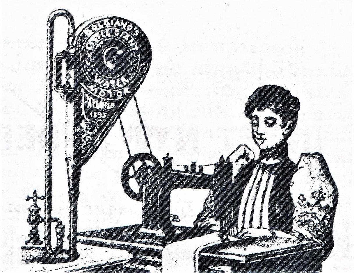 Vanddrevet symaskine fra 1883.