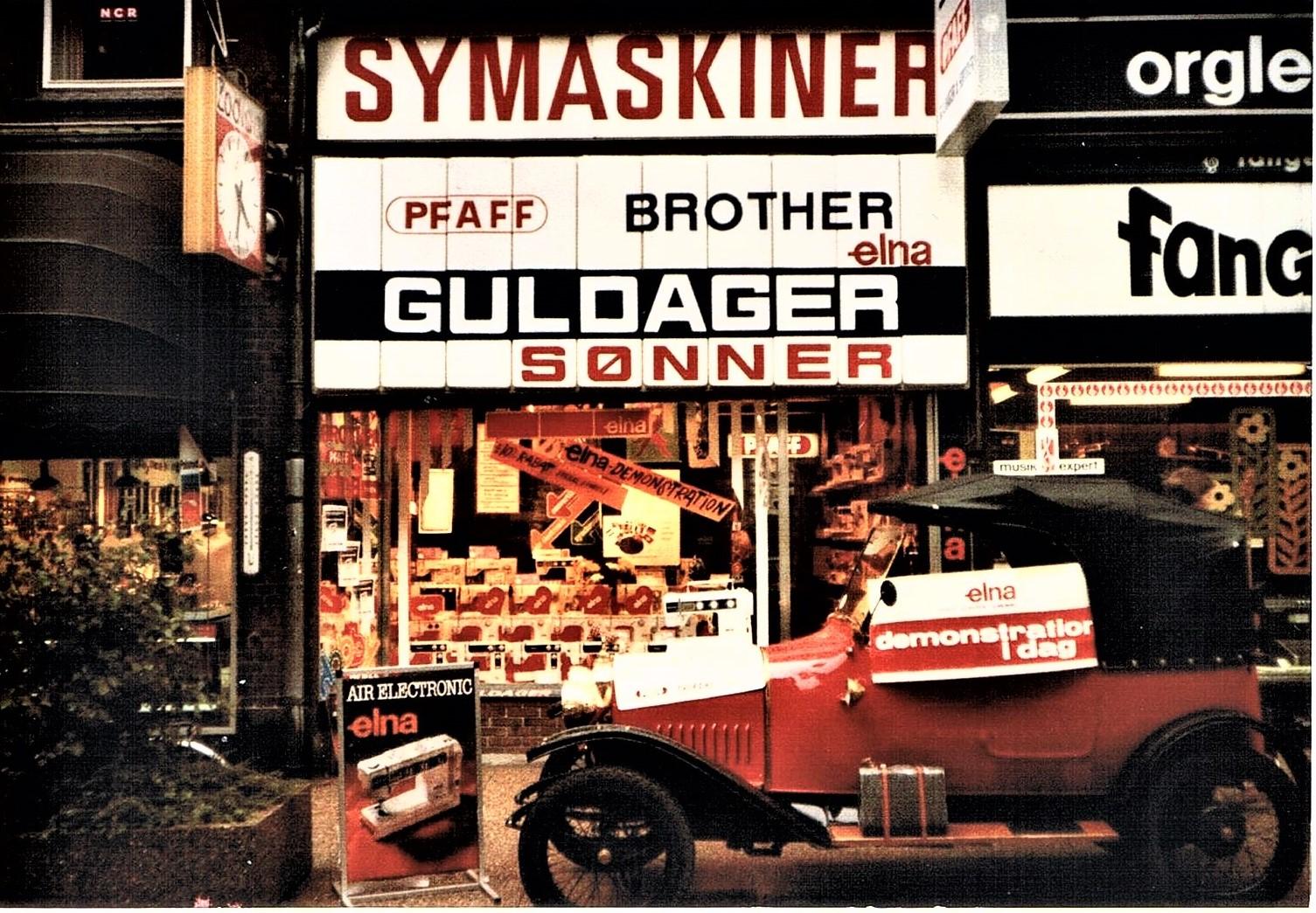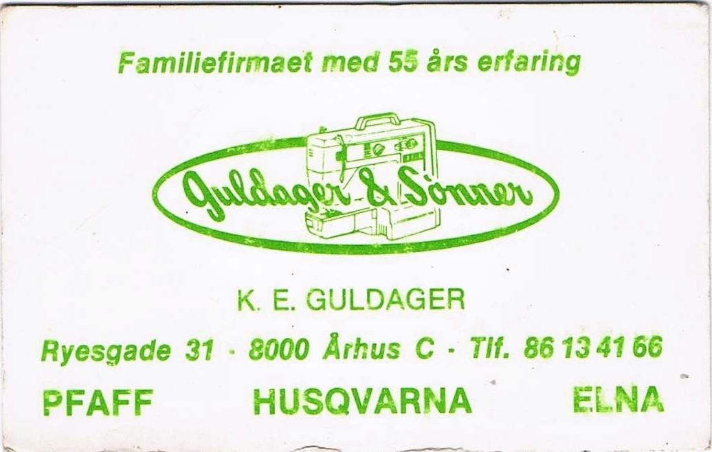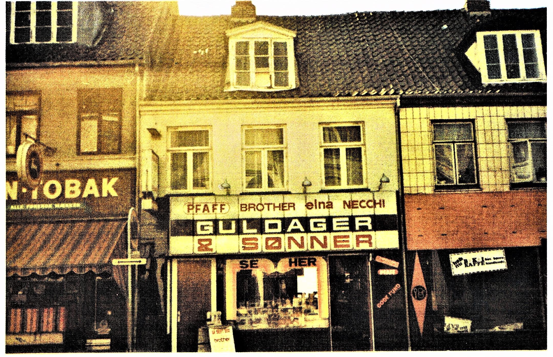 Niels Arne Guldager 1908-1990 1938–1939: Starter og arbejder hos Pfaff i Randers. 1939-1940: Agent for Hobro og omegn. 1940-1944: Selvstændig i Hobro. 1944-1947: Selvstændig i Randers. 1947-1954: Ansat som første sælger hos Pfaff i Aarhus. 1954-1971: Selvstændig i Nørregade 33, Aarhus. 1971: Opretter endnu en butik i Ryesgade 35. 1978: 1.Jan. Overlader firmaet til Knud-Erik Guldager og trækker sig tilbage. Bent Guldager 1938-1977 1959-1971 Ansat i Nørregade 33, Aarhus.