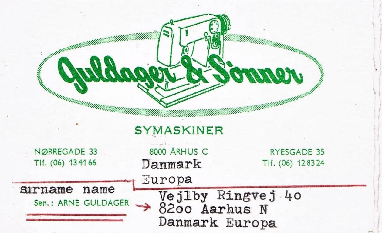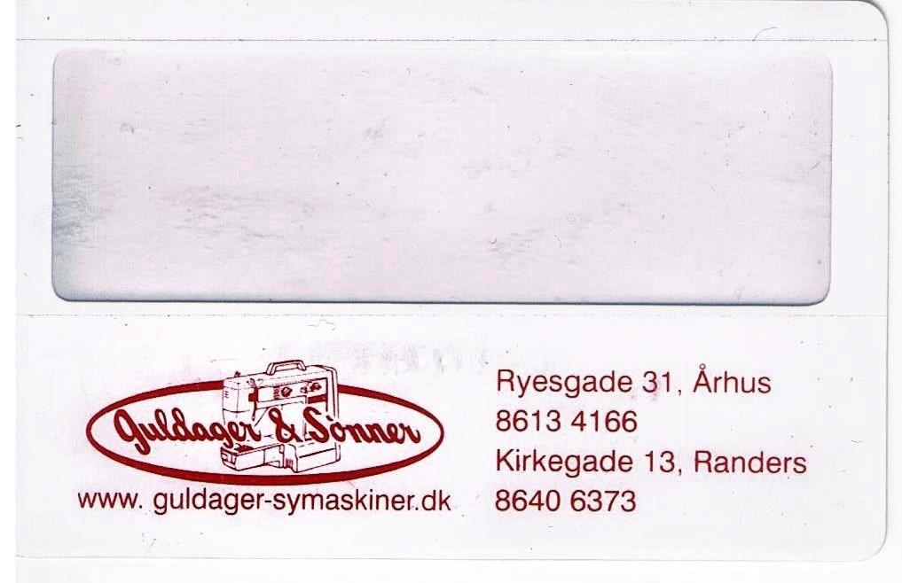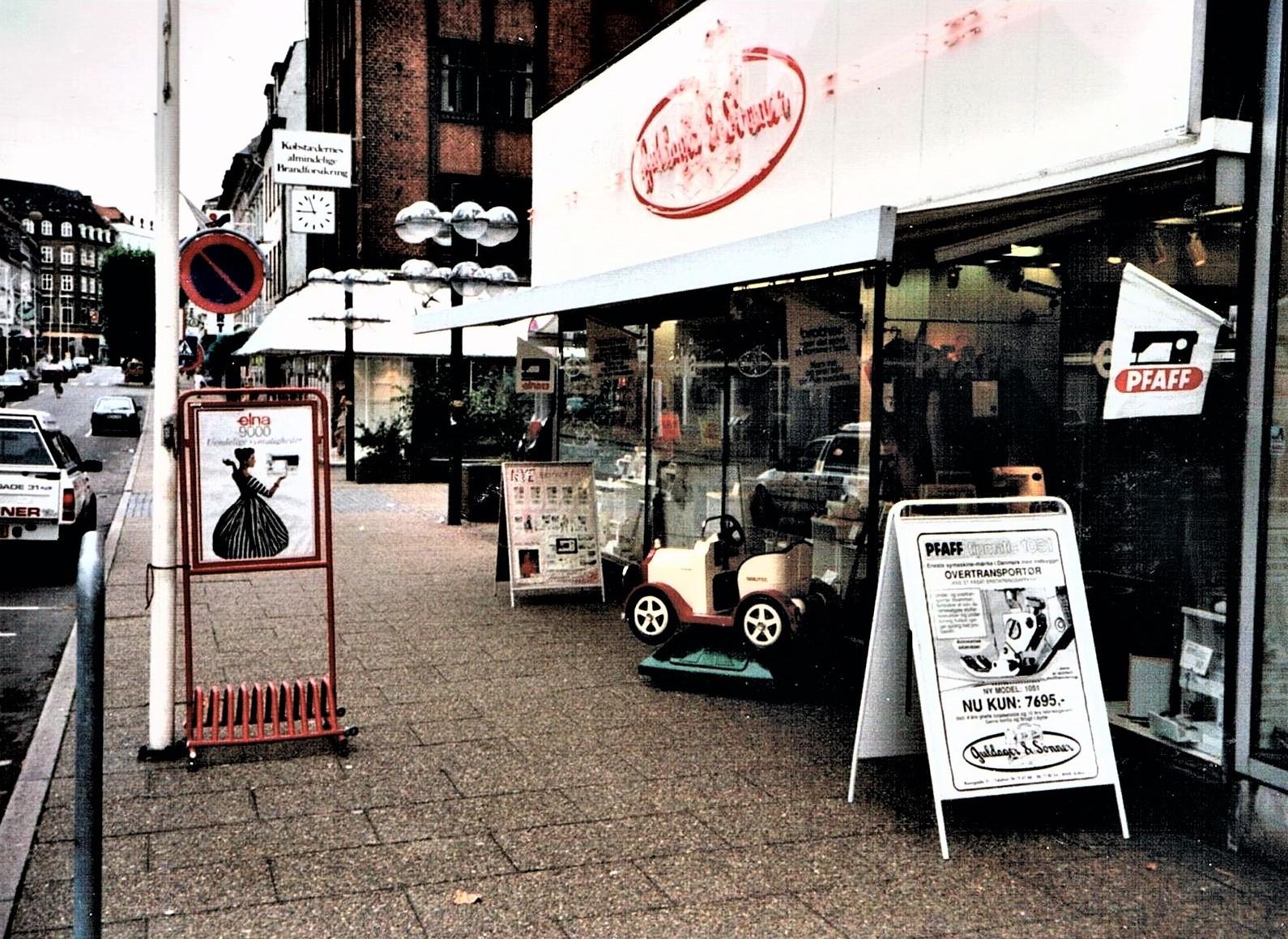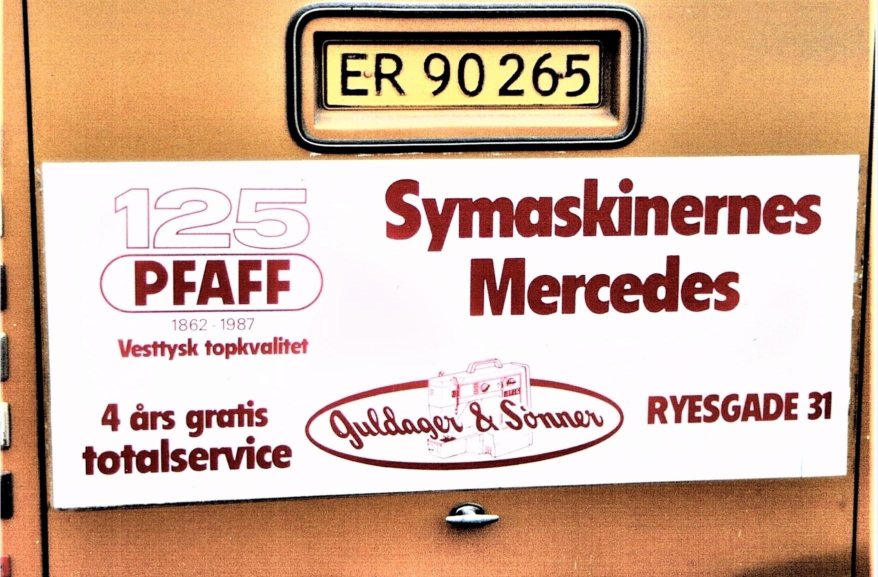 Niels Arne Guldager 1908-1990 1938–1939: Starter og arbejder hos Pfaff i Randers. 1939-1940: Agent for Hobro og omegn. 1940-1944: Selvstændig i Hobro. 1944-1947: Selvstændig i Randers. 1947-1954: Ansat som første sælger hos Pfaff i Aarhus. 1954-1971: Selvstændig i Nørregade 33, Aarhus. 1971: Opretter endnu en butik i Ryesgade 35. 1978: 1.Jan. Overlader firmaet til Knud-Erik Guldager og trækker sig tilbage. Bent Guldager 1938-1977 1959-1971 Ansat i Nørregade 33, Aarhus.