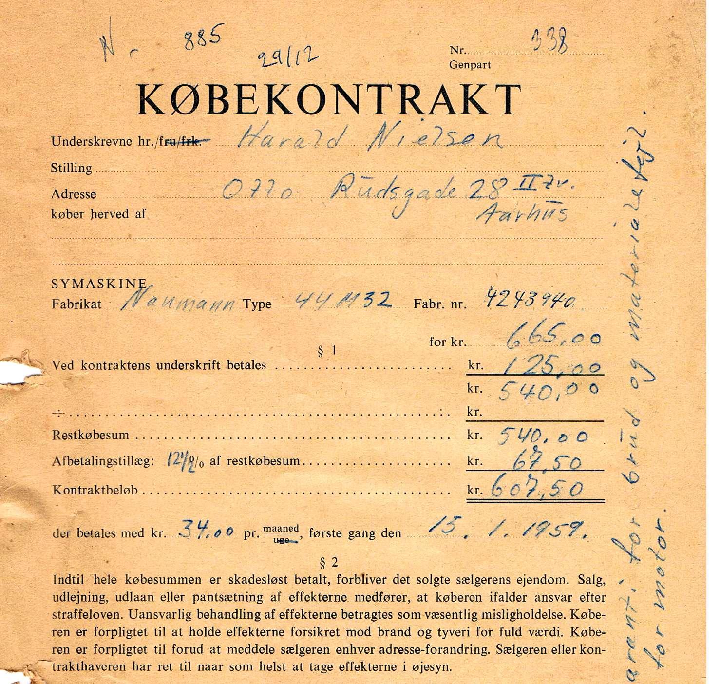 Min far solgte jo symaskiner, og hentede afdrag fra de allerede solgte maskiner. Det var mest hos småkårsfolk der syede alt tøjet selv. og derfor var nødt til at have en symaskine, men de havde ikke råd til at købe den kontant.