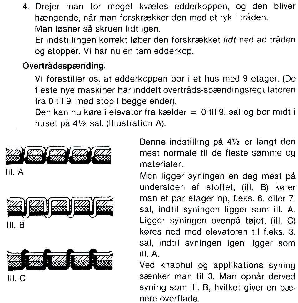 Under krigen kunne min far jo ikke få nye symaskiner, men så fandt han en dag et stort lager af industrisytråd i kæmpestore koniske ruller. Industrien havde ikke tøj nok til at sy nyt af og de private manglede sytråd, da de hele tiden måtte sy tøj om, især til børnene, af gammelt tøj somsprættededeop.En voksenvinterfrakkekunne også blive som ny, hvis man sprættede den op og vendte bagsidenafstoffetud. -Detvarengodfidus. Man endevendte også lagener, der var slidte påmidten, men sjældent i enderne. Man klippede så lagenet tværs over på midten og syede de to uslidte ender sammen og vuptihavdemanetnæstennytlagen.
