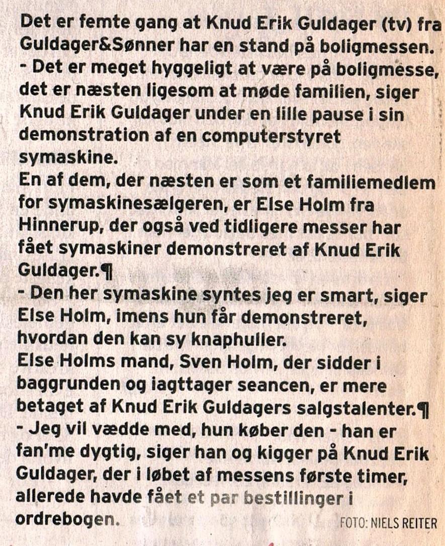 En dag så min far Niels Arne Guldager i en avis, at et symaskinefirma i Randers søgte agenter til salg af symaskiner. Min far elskede at sælge, så hvorfor ikke prøve det? - Det var hos Pfaff i Houmeden. Han søgte stillingen og fik den. Han var da 30 år, gift og havde et