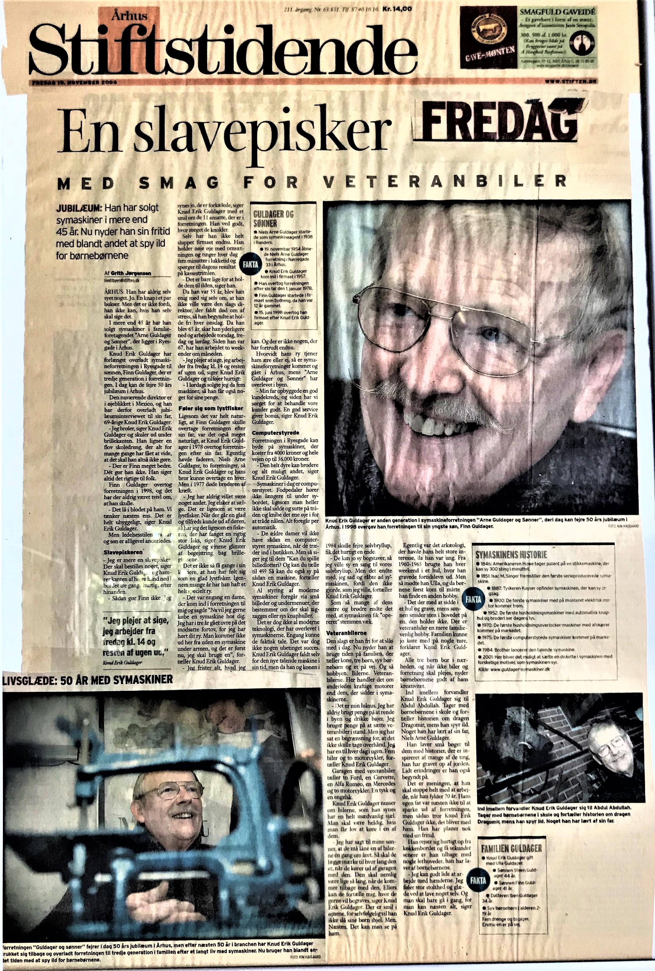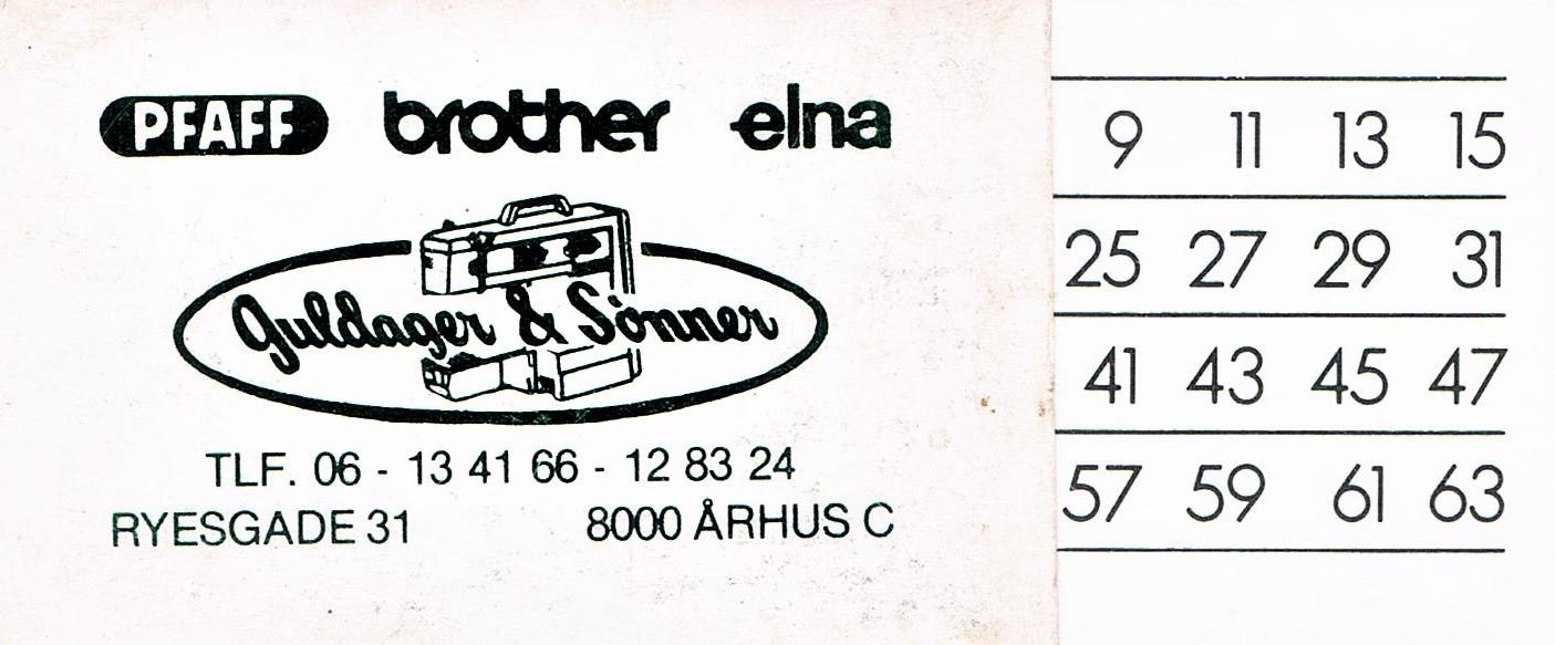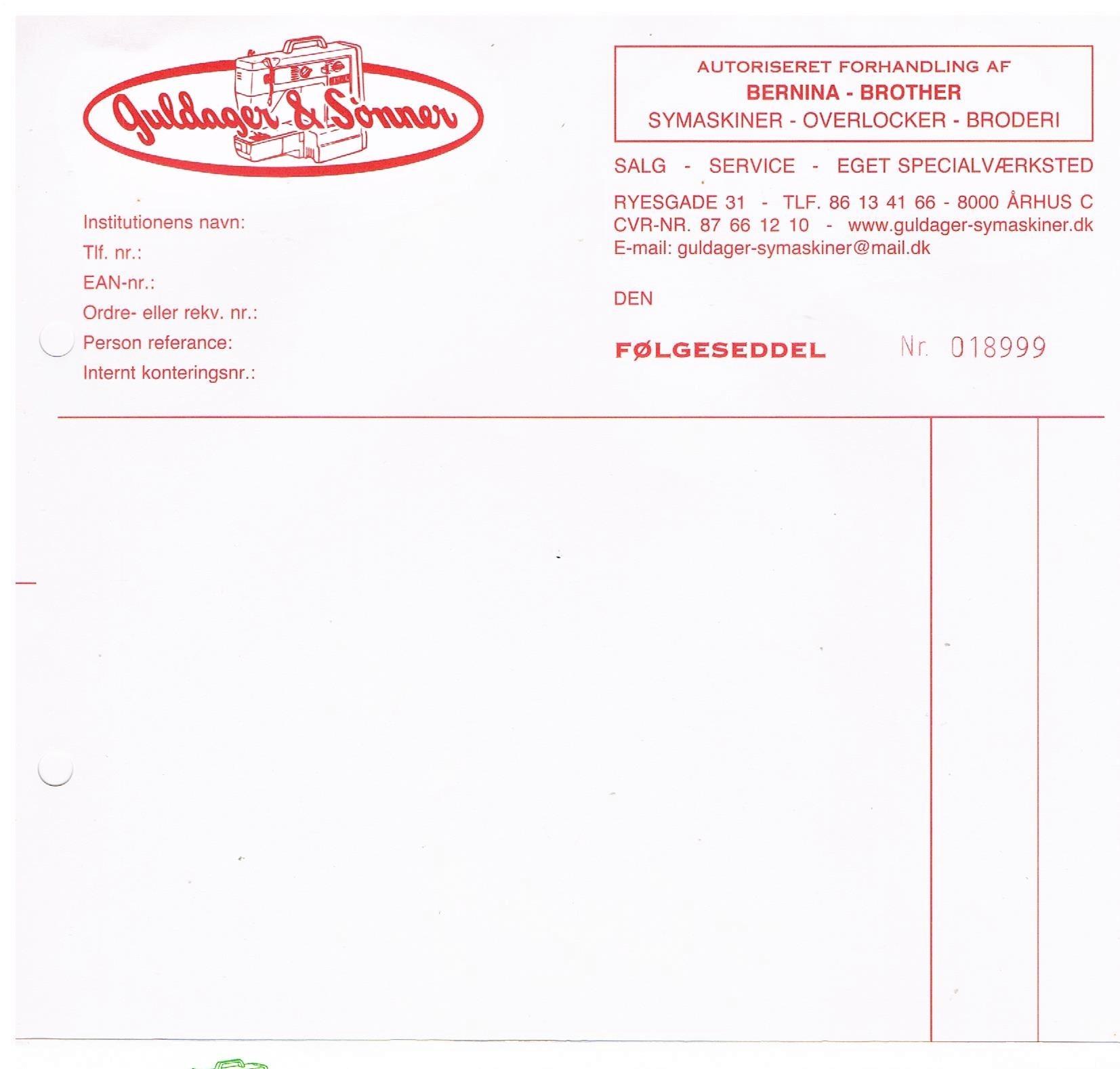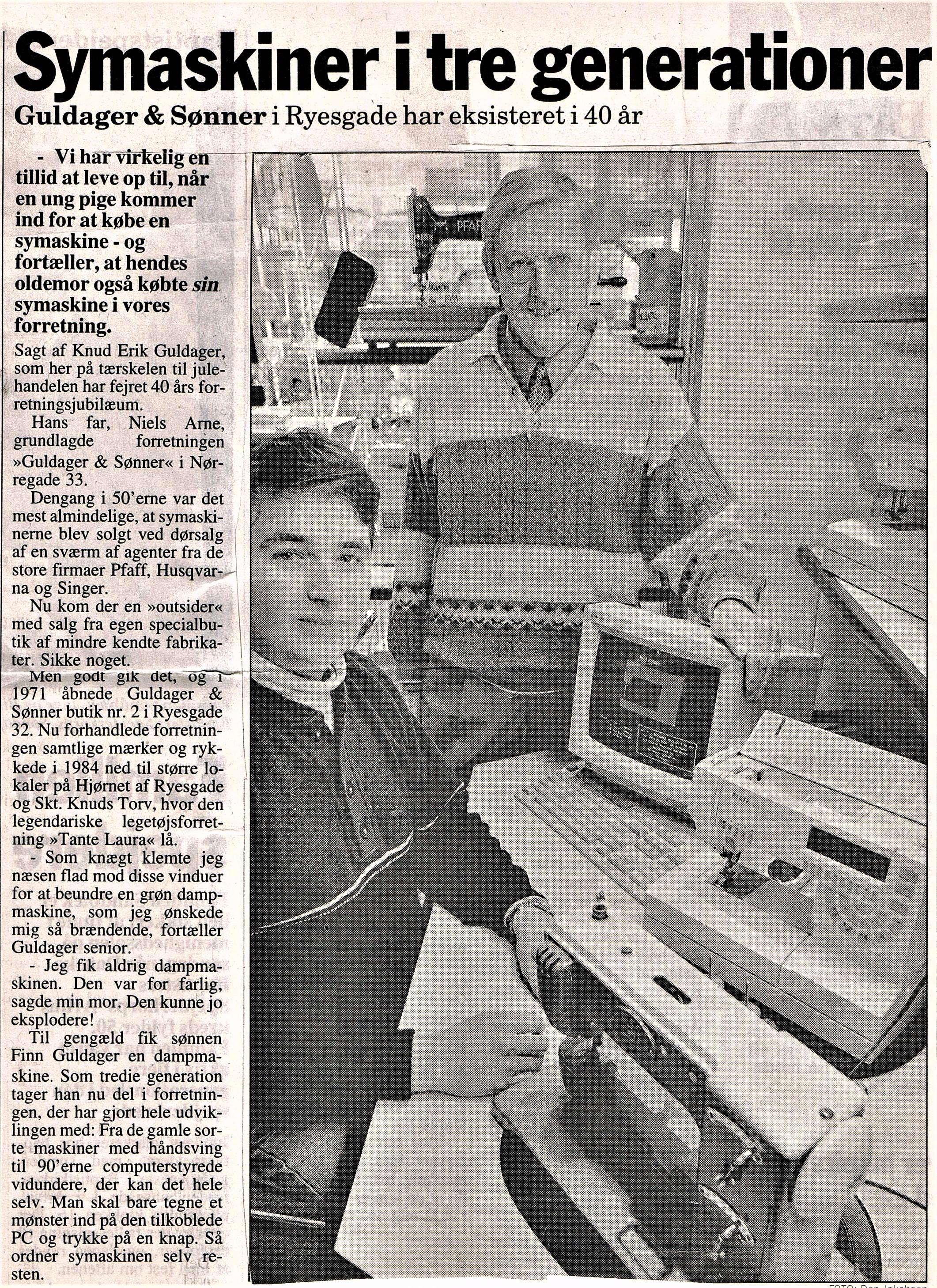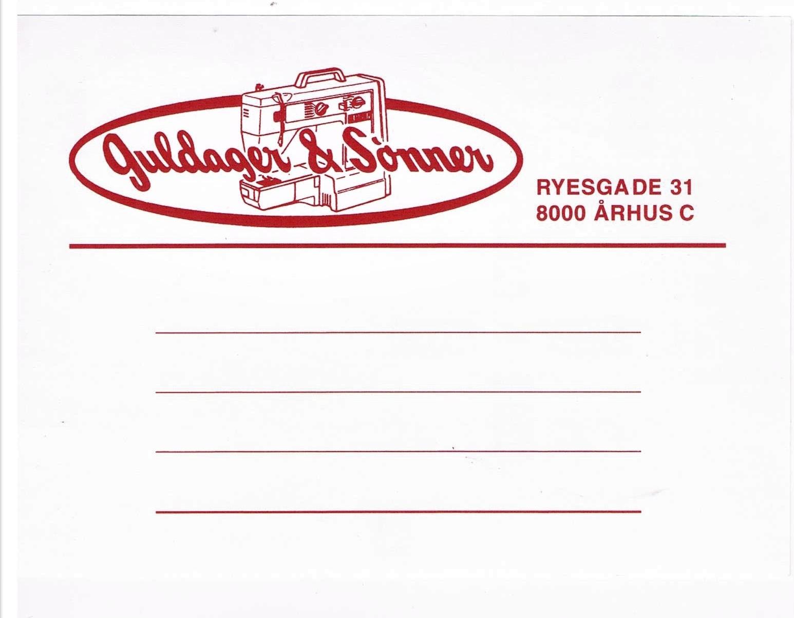 Guldager: 19631978: Starter som bydreng 15 år gammel. Gik fra 9. klasse direkte til gymnasium. 1982: Student 16. juni. 1982-1983: Fuldtidsansat i Ryesgade 35. (Sabbatår) 1983-1984: Tager højere handelseksamen. 1984-1988: Fuldtidsansat Ryesgade 31. 1988-1995: Selvstændig. Bernina Bruunsgade. 1995: Overtager firmaet Guldager & Sønner. 1997: Sammenlægger Bruunsgade og Ryesgade butikker 2005: Køber ejendom og starter forretning i Randers. 2007: Forretning i Randers lukker. Ejendom beholdes. 2010: Overtager importen af Brother i Danmark. 2015: Overtager importen af Brother i Sverige. 2019: Overtager importen af Brother i Finland. ---o0o---