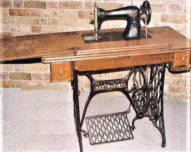 Det var sådanne modeller han cyklede med på bagagebæreren Nu fylder en trædemaskine jomeget og ertung,med sit støbejernsunderstel. Heldigvis kunne de fleste sænkes ned i en kasse i stellet. Sådanne blev kaldt kabinetmaskiner.
