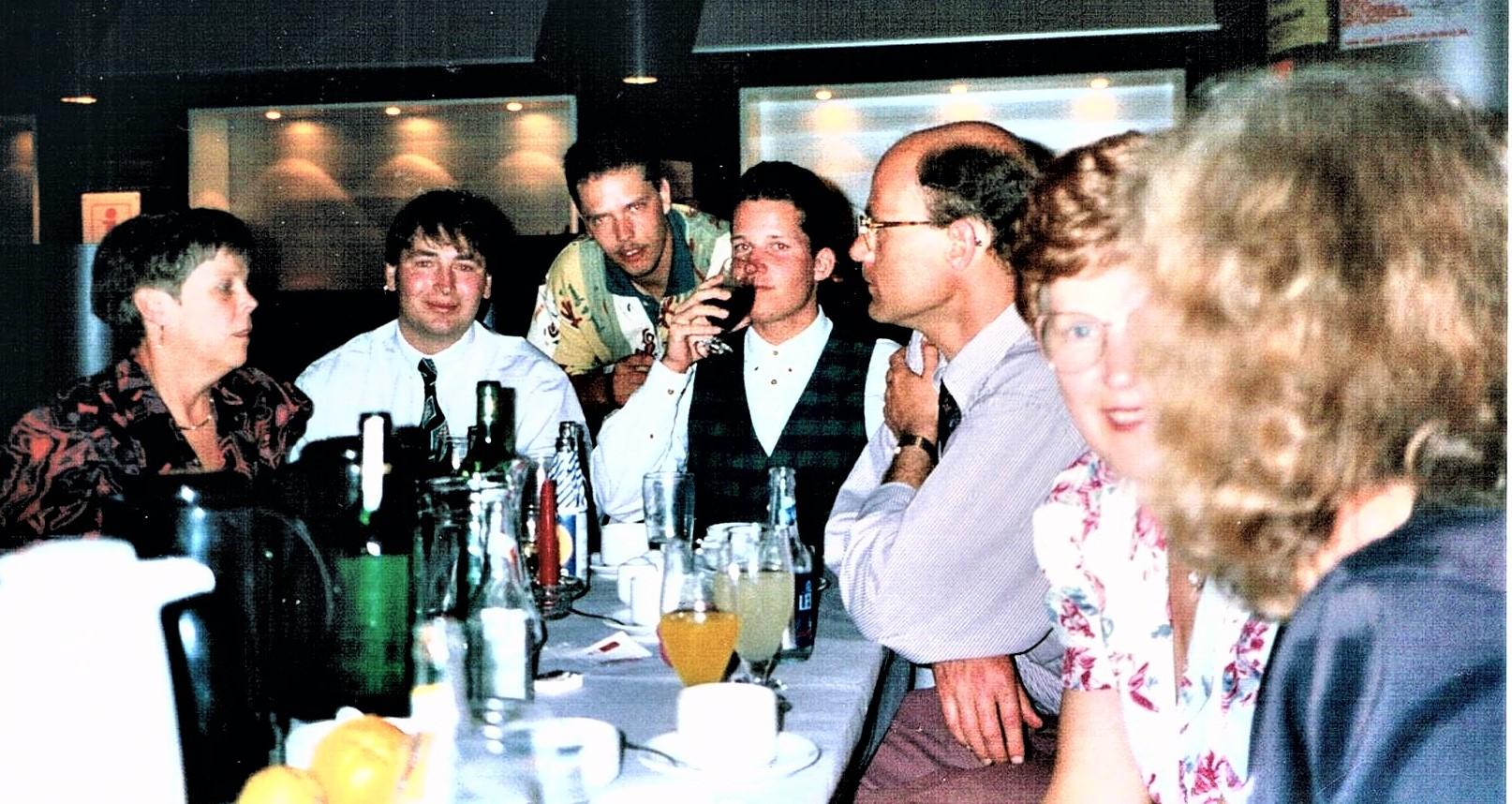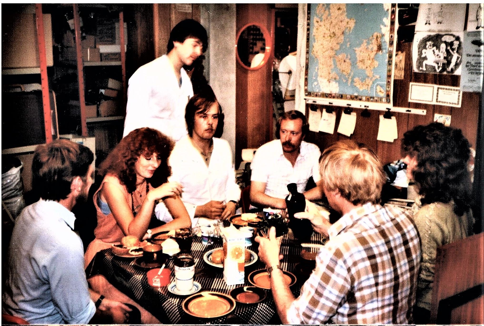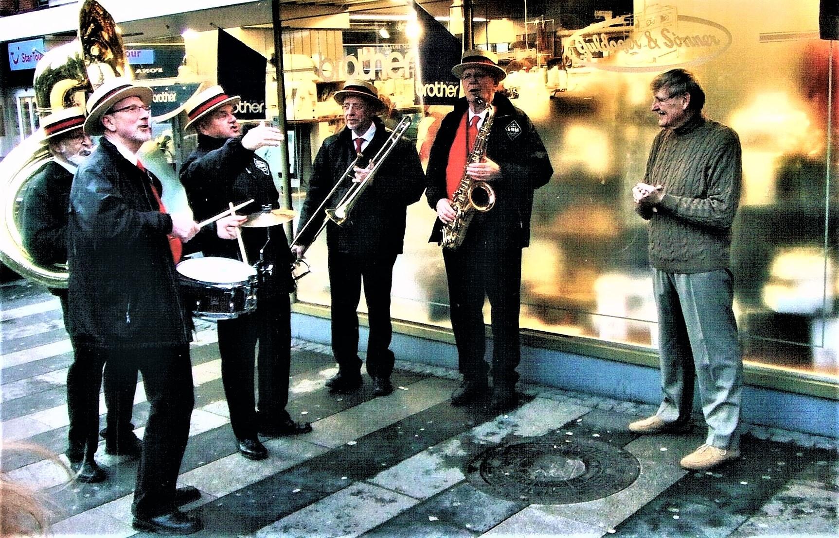 at glæde mig havde firmaet hyret vores gamle ”husorkester”,”RamsingStreetParaders”,numedenlidt ny besætning, men de huskede vores gode gamle firmaslagsanggennem30år,ogdenspillededeforfuldtdrøn.