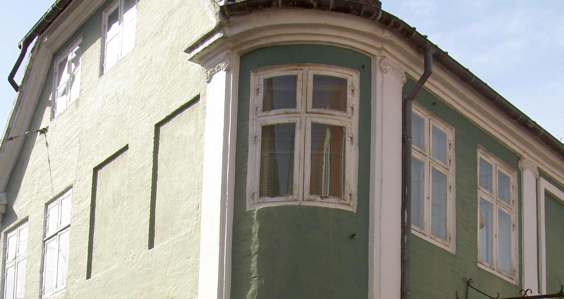 Huset var en hjørneejendom på to etager. Der var otte lejligheder. Vi boede i stuen til venstre i den del der lå ud til Marienborgvej. Den anden del lå ud til Christiansborgvej.