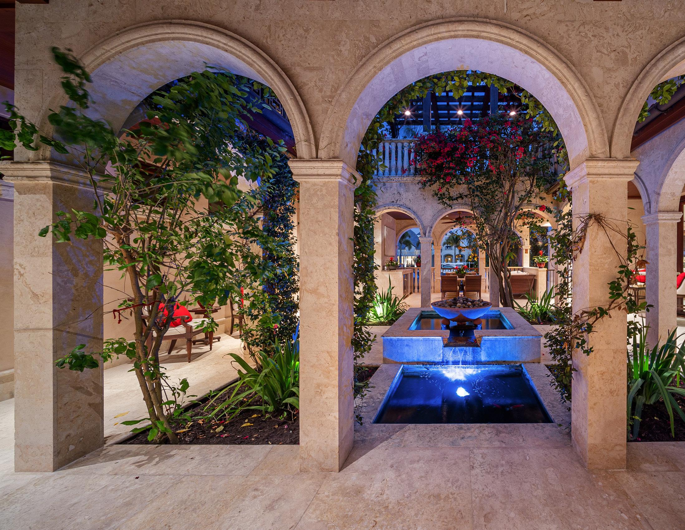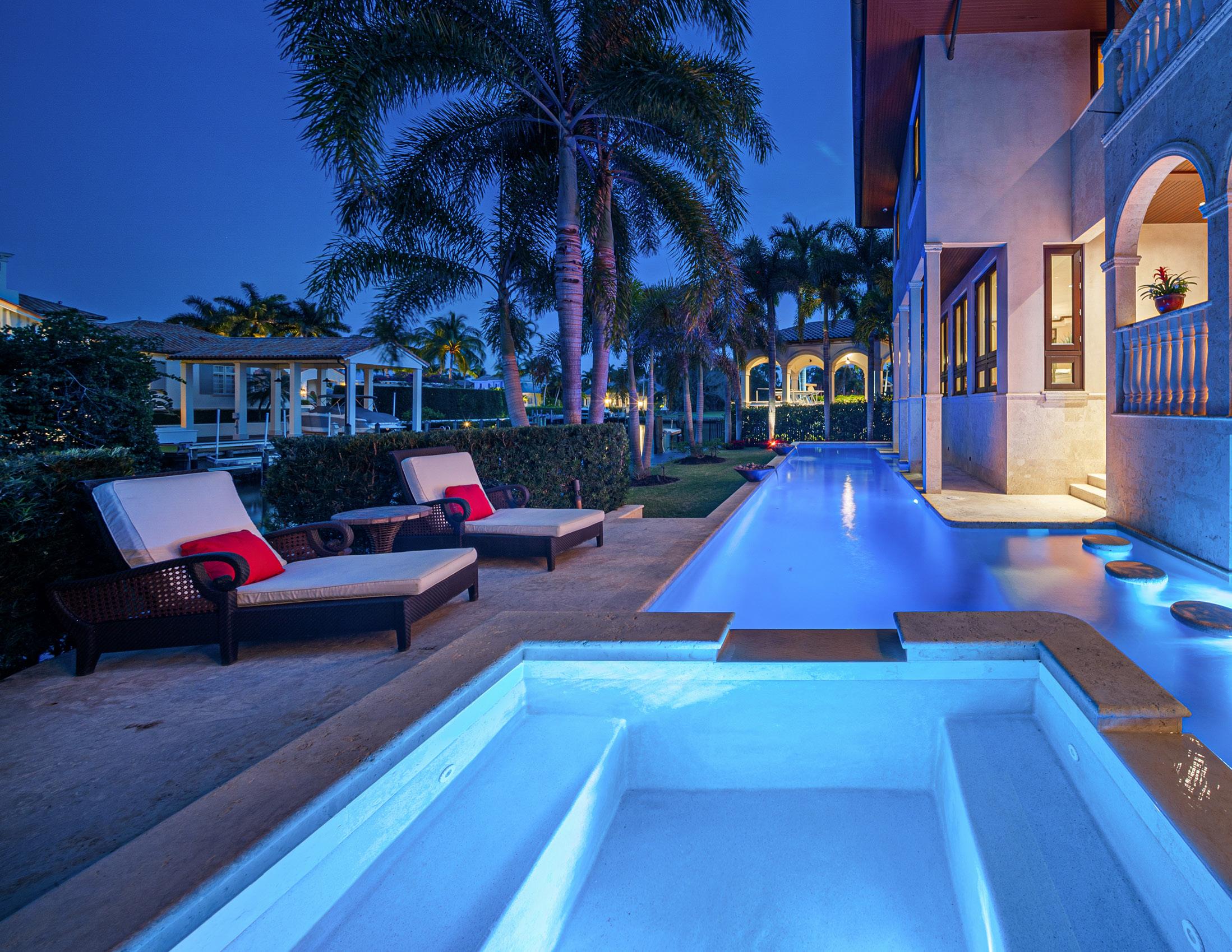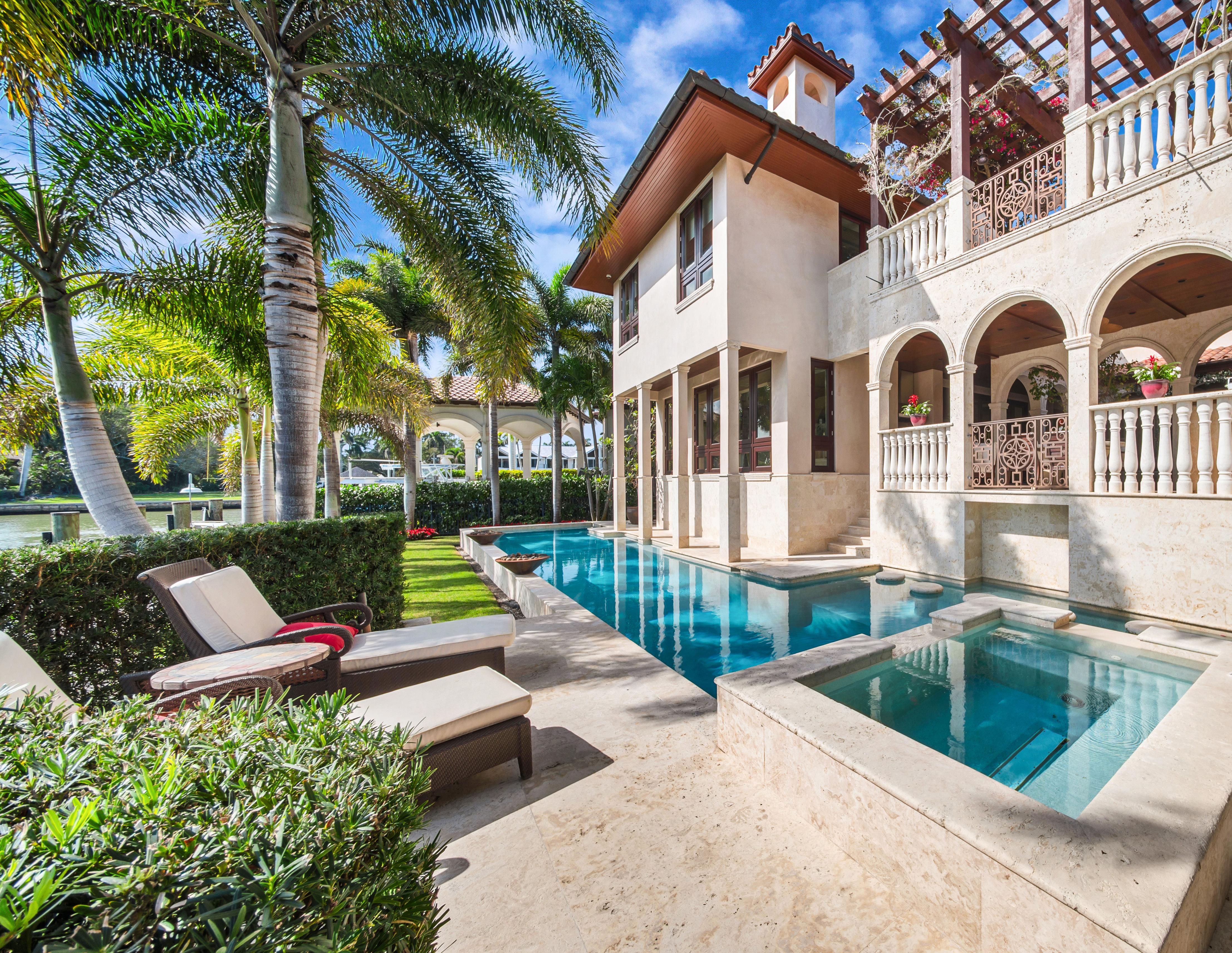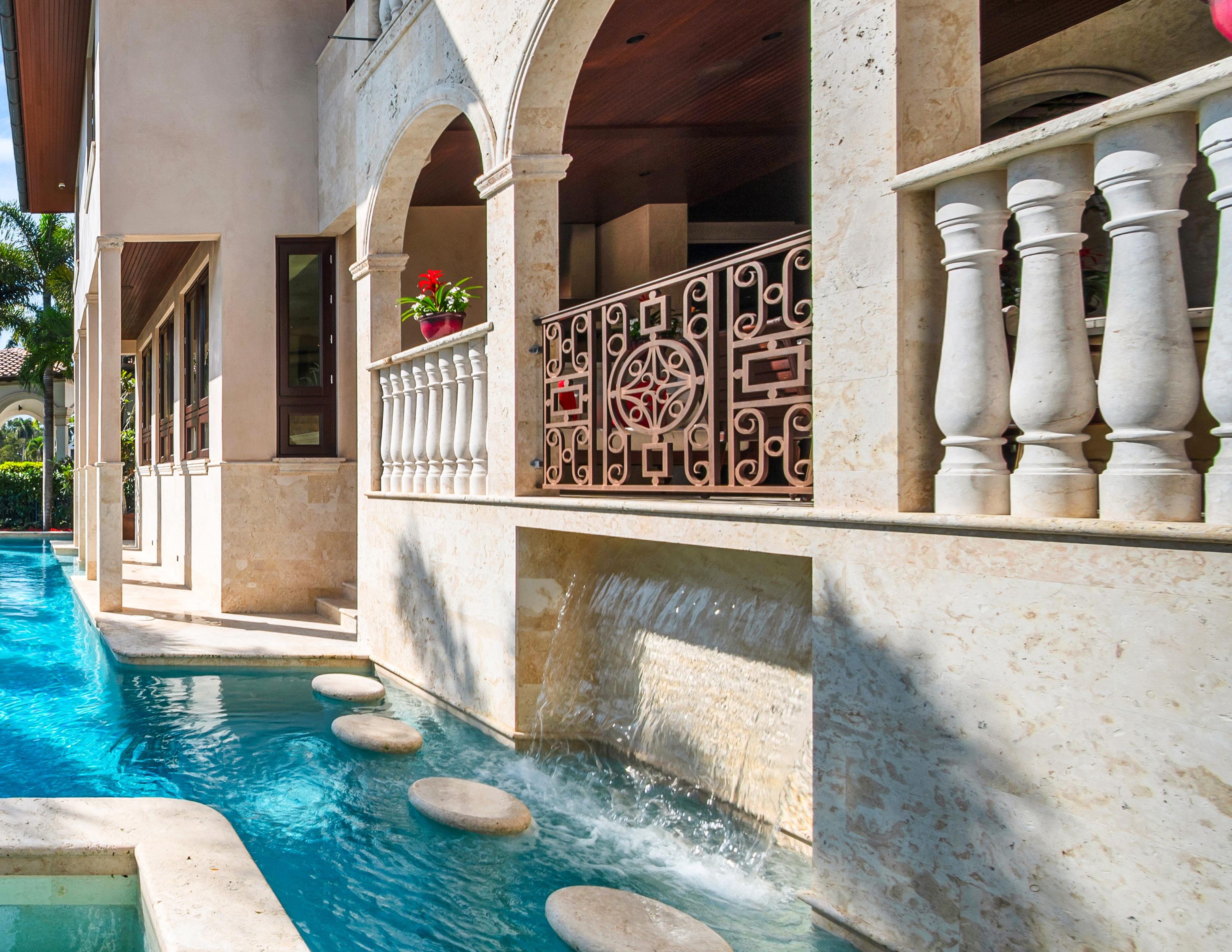 Unparalleled beauty defined in this Asian-Italian inspired courtyard home in Aqualane Shores. Upon entering through an iron gate you are greeted by a flowing water koi pond, exquisite Marmorino venetian plaster walls on the interior and exterior, Luxbaum windows, stone and rosewood floors throughout highlighted by blooming bougainvillea views enjoyed from every angle. Enjoy waterfront living with a 60-foot pool, covered boat slip, and floating dock area; seconds to the bay and direct bridge free access to the Gulf. Ample space for relaxation and entertaining in the large great room dining kitchen area, 5 bedrooms, 5 full baths, and 2 half baths. The second floor holds an additional family room with bar and kitchen area on one side connected by an outdoor terrace sitting area to the master suite on the other. The master bedroom has a private sun terrace, a walk-in closet, a large bathroom with dual marble sinks, soaking tub and steam shower. Experience breathtaking views from the third-level terrace balcony, overlooking Naples Bay and the Gulf of Mexico. Just a 10-minute walk to white sandy beaches, this home offers the ultimate in coastal living. Minutes to 3rd Street South shopping and dining district. This home was designed by Tom Pitchard of Matterlake Designs in NYC and built by Garcia Builders.